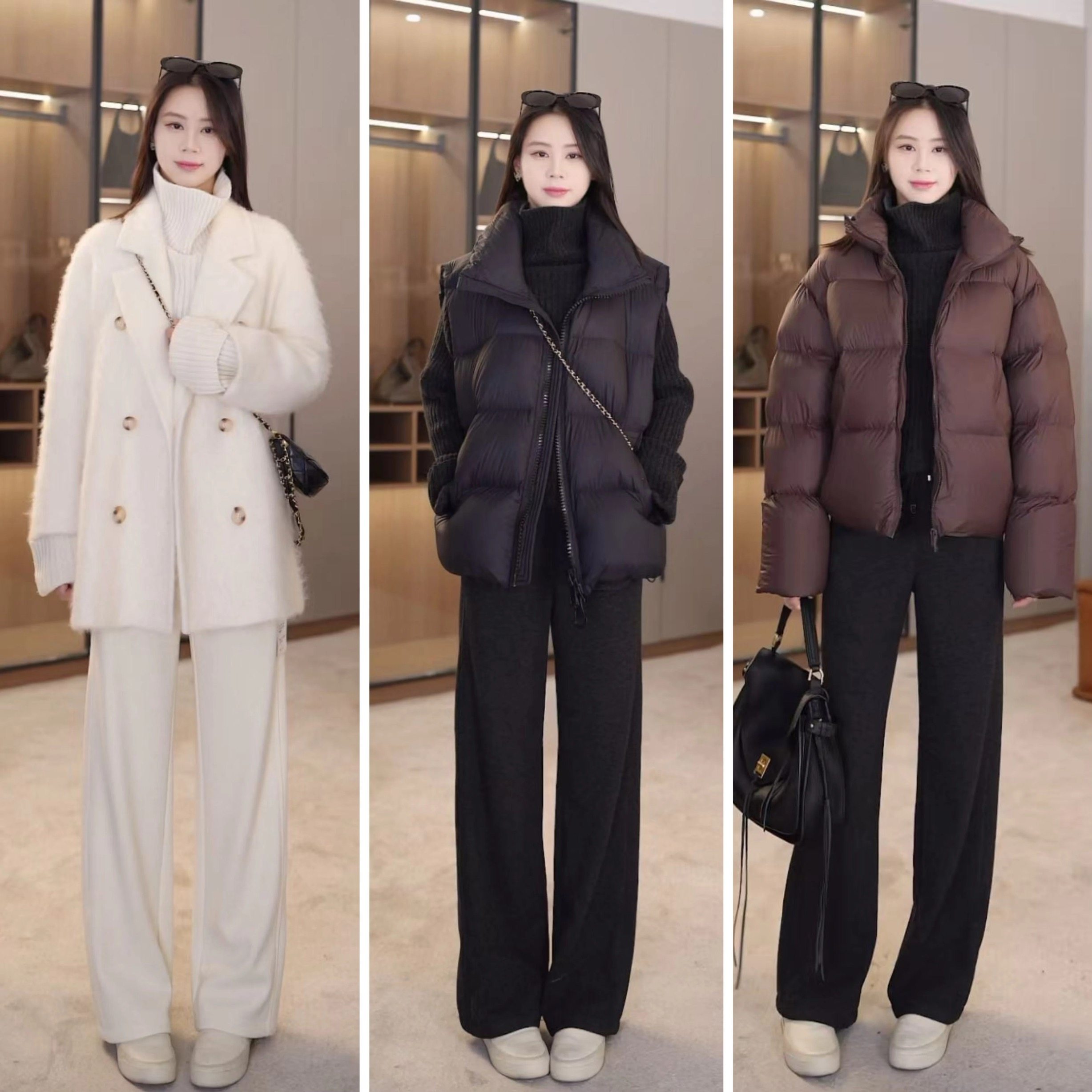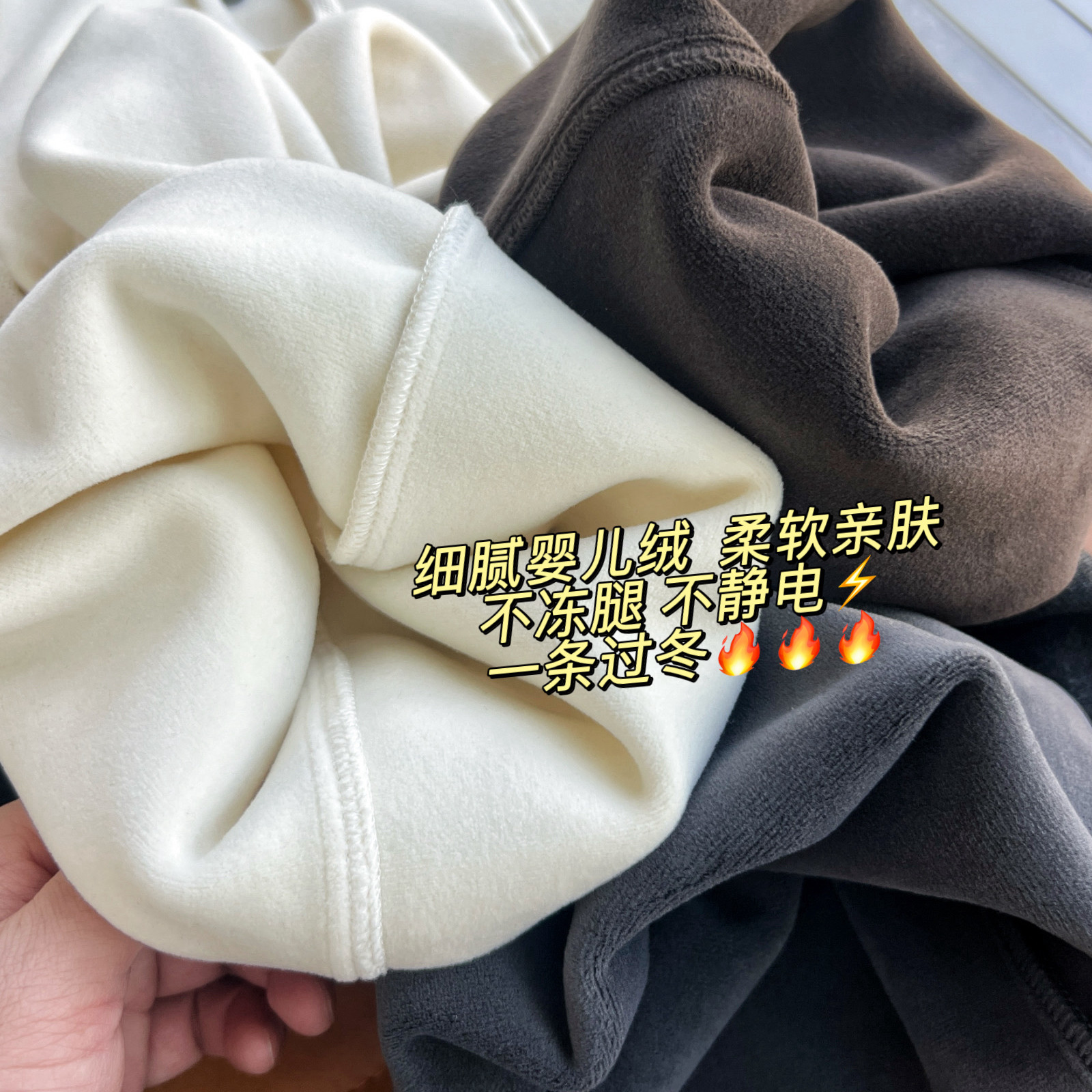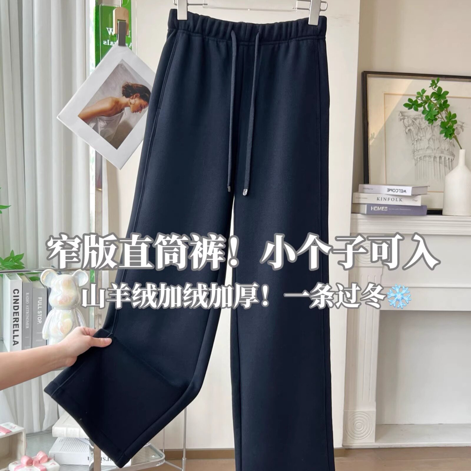 📚 一条过冬米白色羊毛阔腿裤高腰绵羊毛加绒加厚小个子窄版直筒裤女