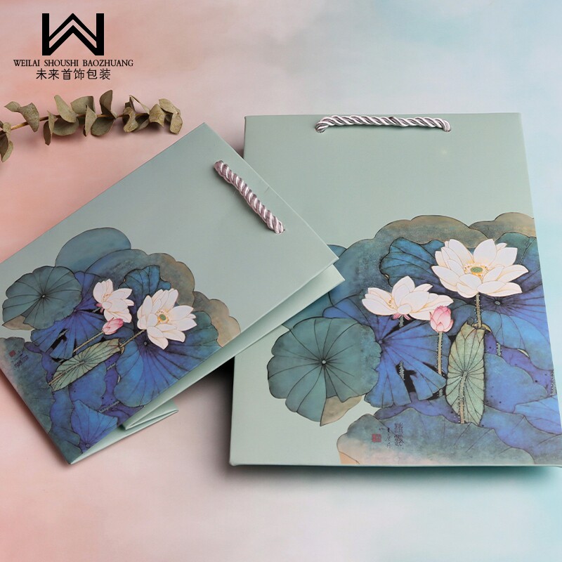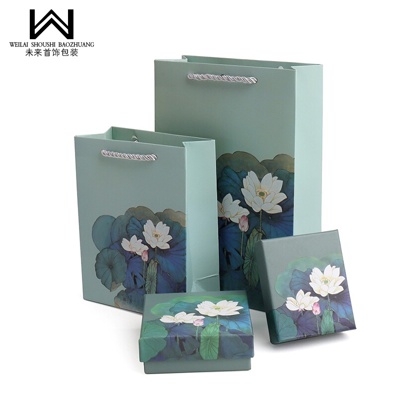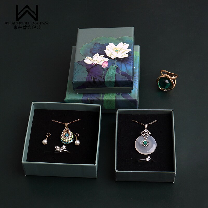 📚 水墨风荷花盒首饰包装礼品盒吊坠手镯收纳纸盒子天地盖多用logo
