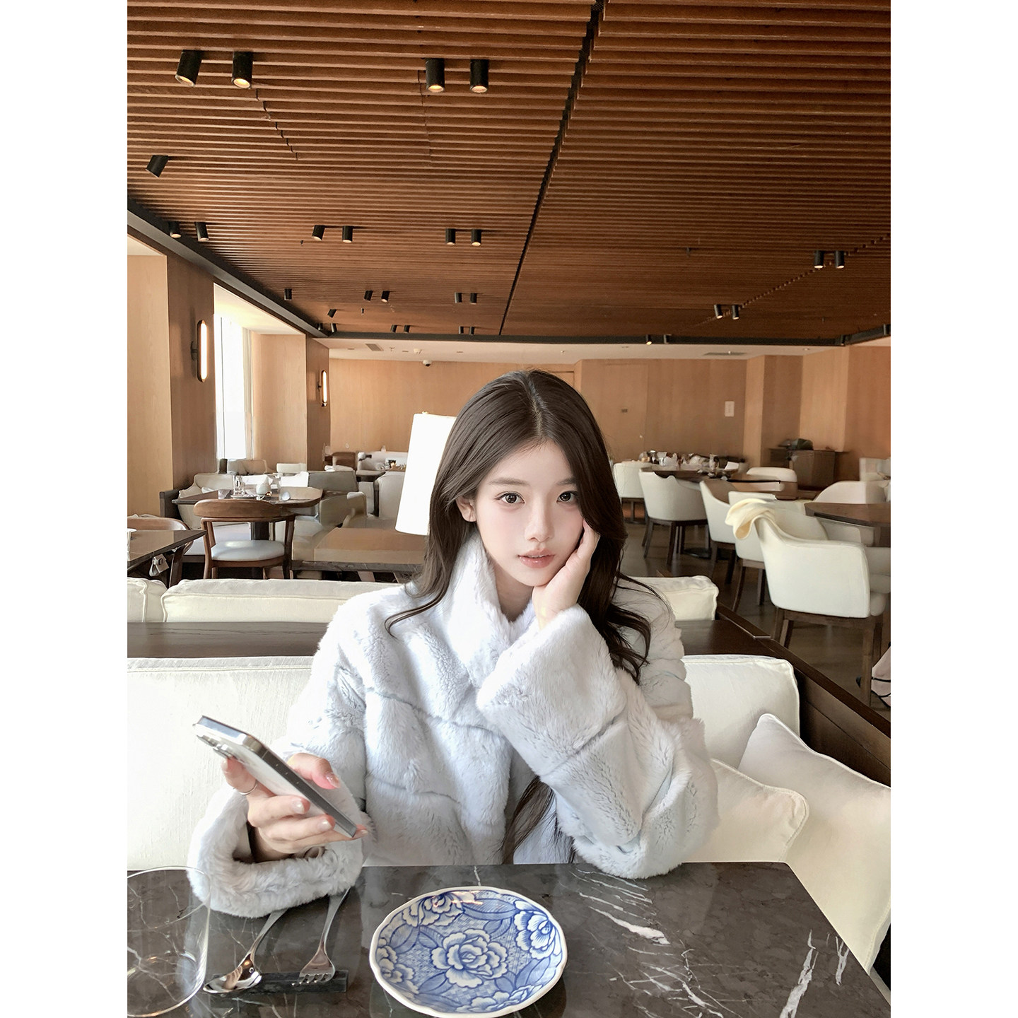 📚 若语定制 奶香兔 100獭兔毛立领皮草外套名媛千金风高级贵气感冬