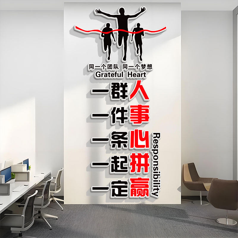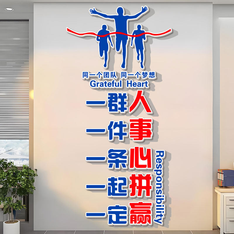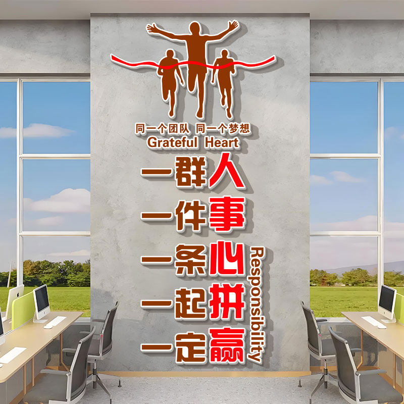📚 公司企业办公室一群人一件事一条心一起拼一定赢墙面装饰励志墙贴