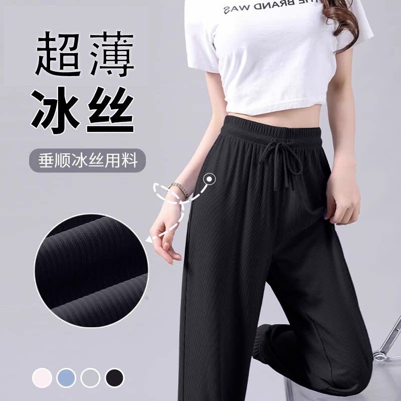 📚 2026广州十三行夏季爆款冰丝束脚运动裤女郑州高腰小脚灯笼女裤子