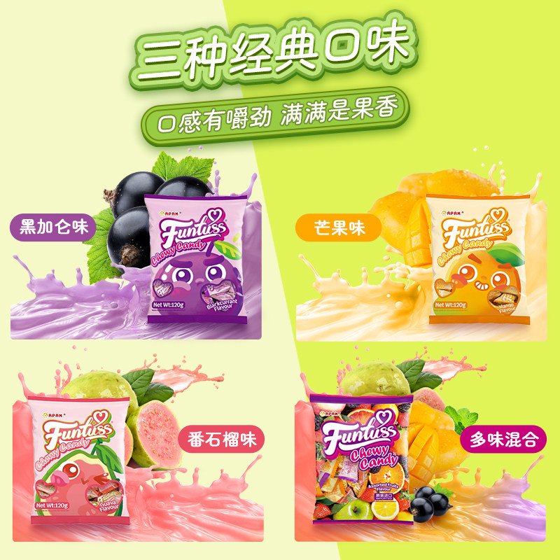 📚 马来西亚进口欢特思水果软糖芒果黑加仑番石榴味袋装解馋糖果零食