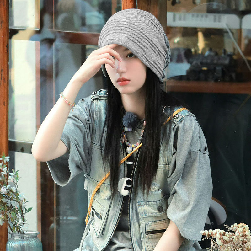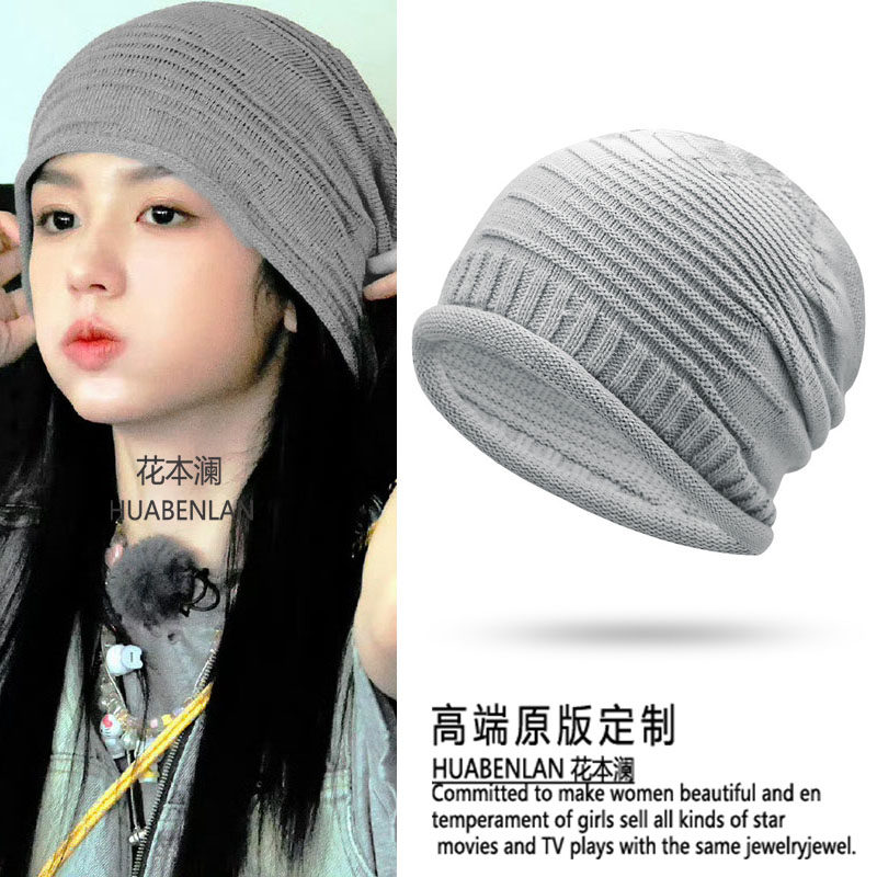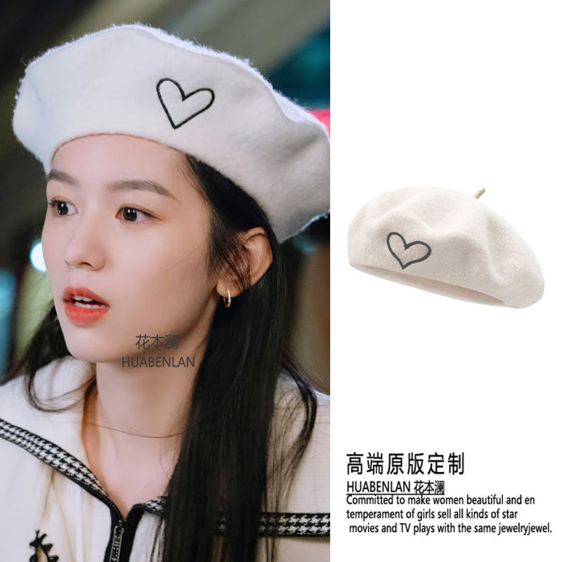 📚 周也同款帽子贝雷帽灰色针织透气冷帽堆堆帽爱心刺绣明星画家帽