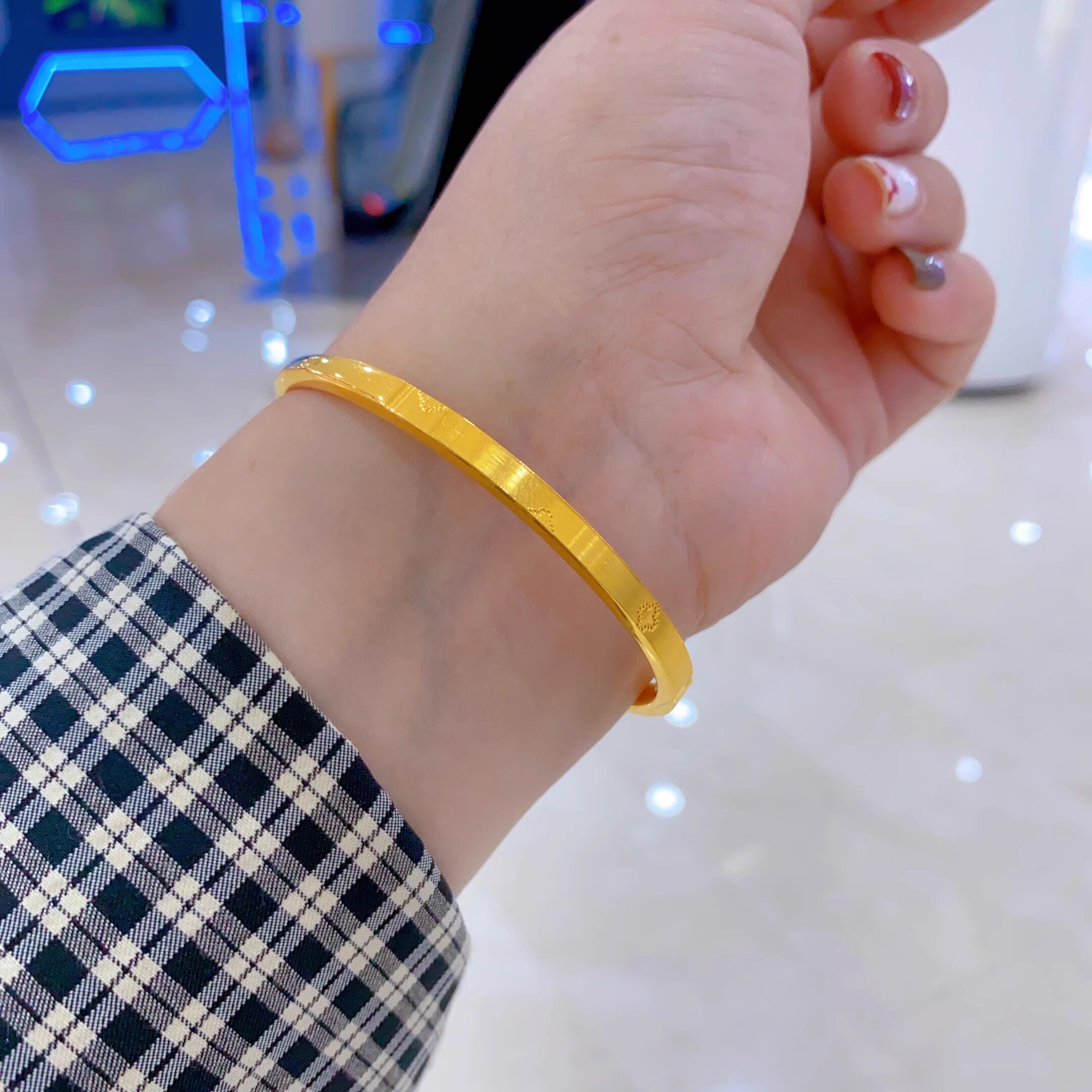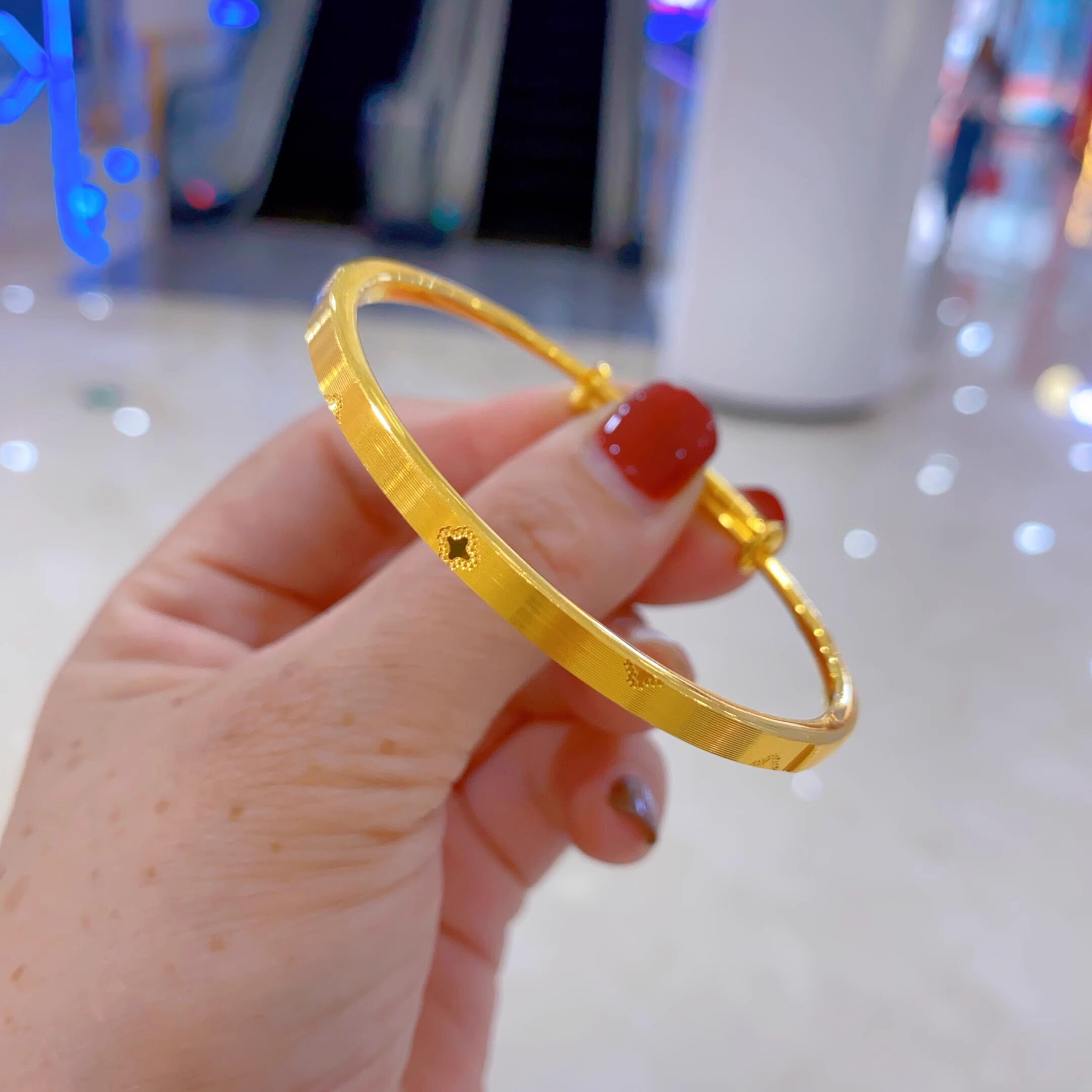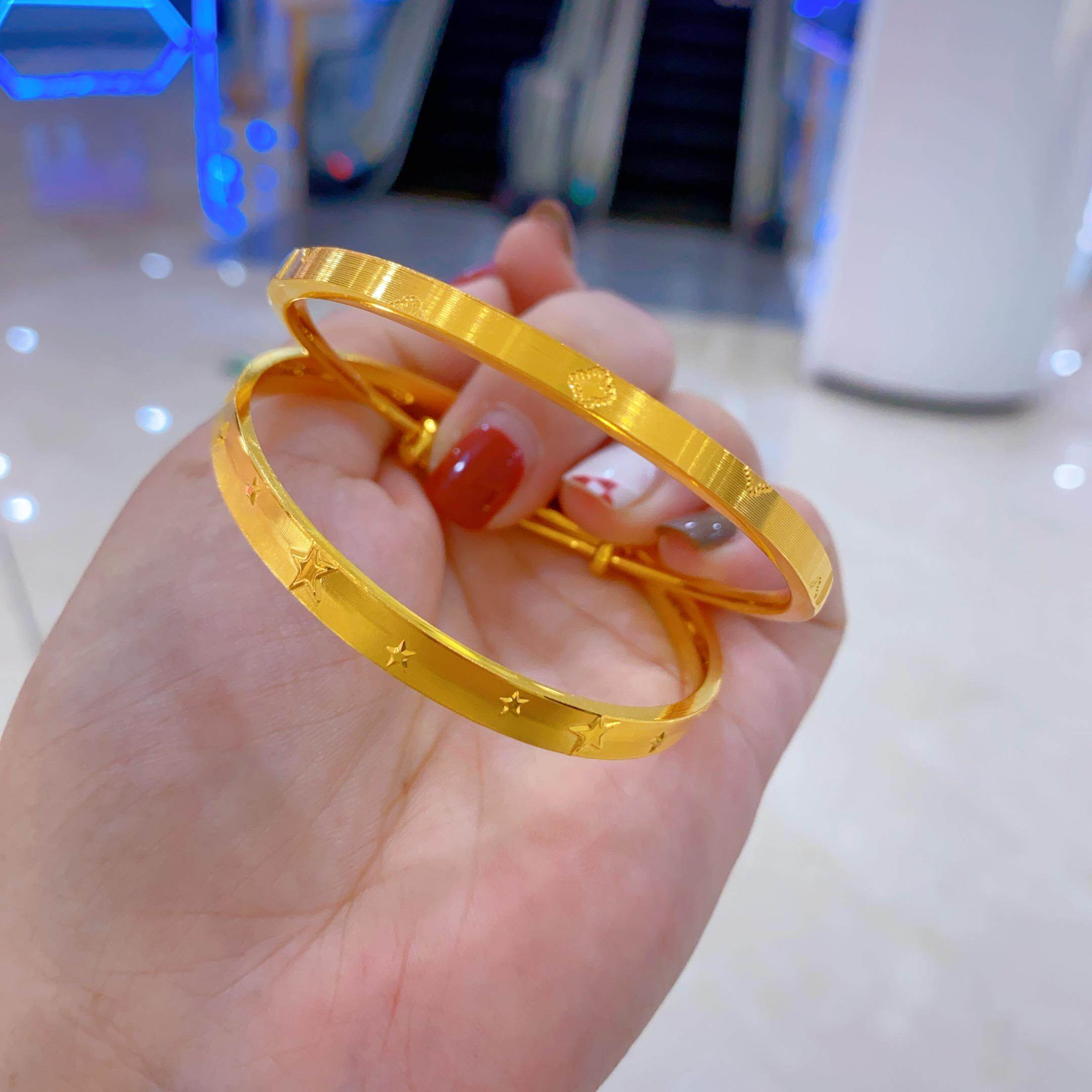 📚 金包银手镯女花朵推拉圈口可调窄面亮面车花拉丝工艺送女朋友
