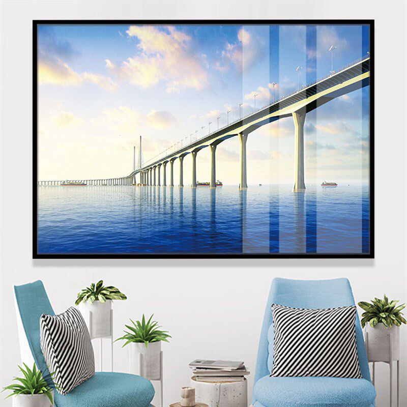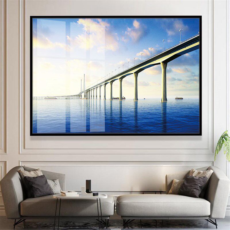 📚 港珠澳大桥梁装饰画大海风景长方形单幅晶瓷画公司茶水间横向挂画