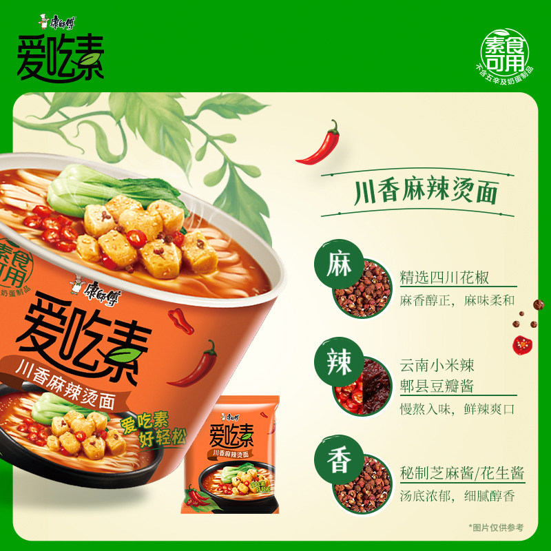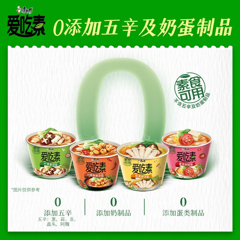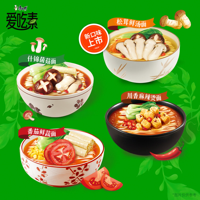 📚 康师傅爱吃素方便面轻享素食番茄菌菇蔬菜多多速食泡面早餐夜宵