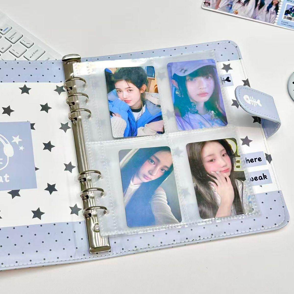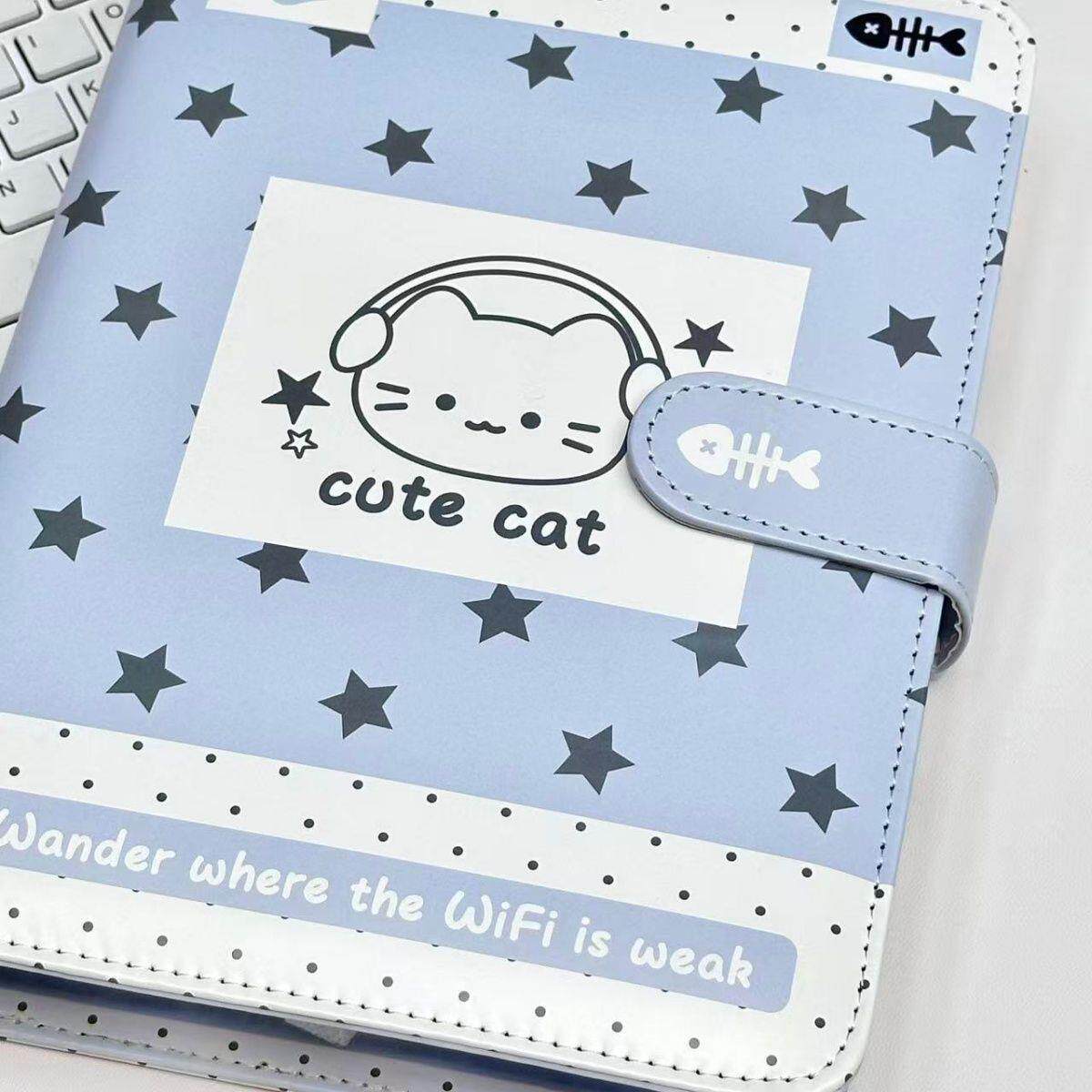 📚 ins可爱蓝色星星耳机小猫PU卡册A5四宫格软皮活页小卡收纳册相册