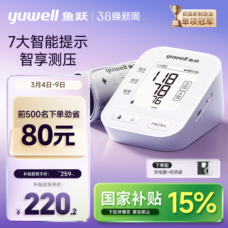 📚 鱼跃电子血压计老人血压测量仪家用高精准量血压仪670AR