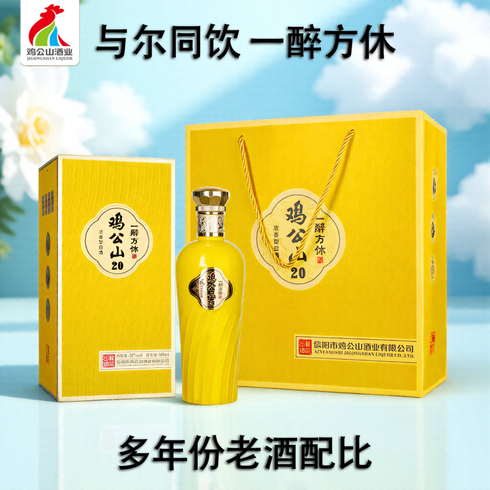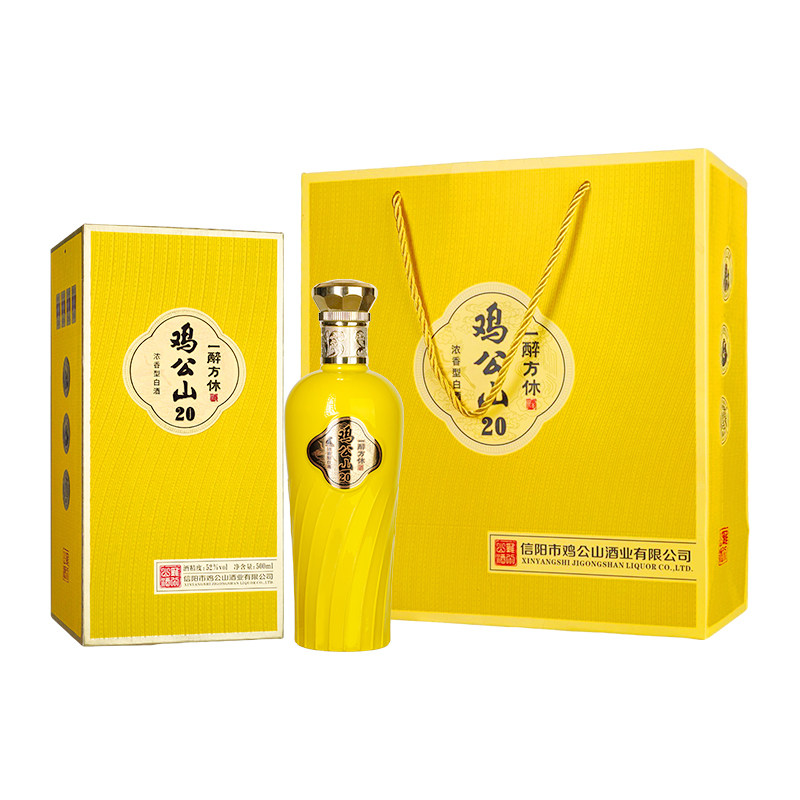 📚 鸡公山52度浓香型白酒高度固态粮食酒一醉方休20款6瓶1箱送礼盒装