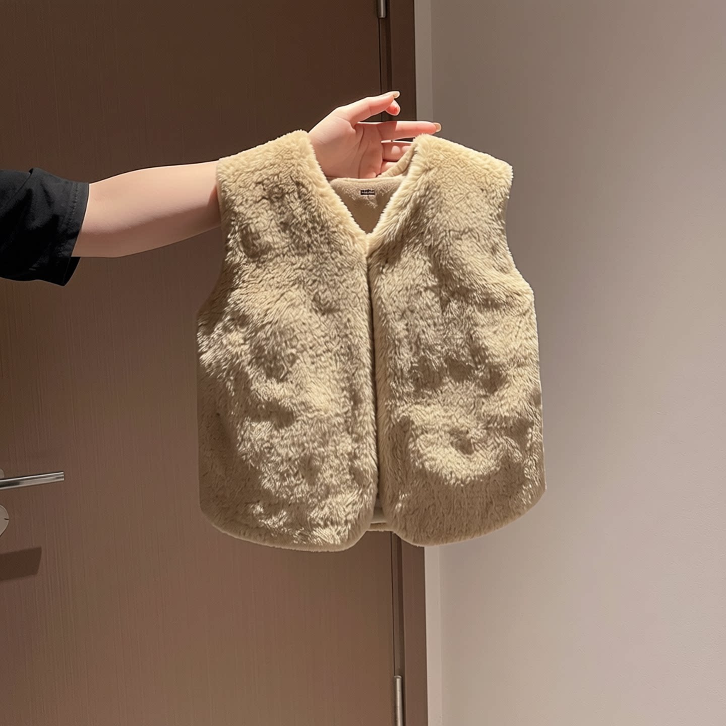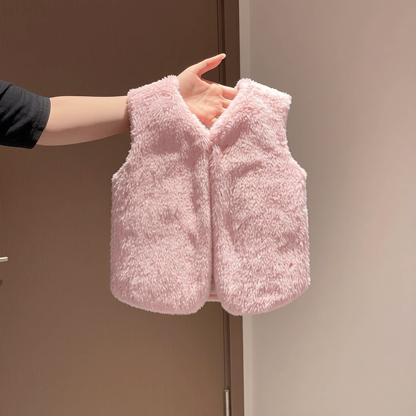 📚 女童马甲仿皮草儿童毛绒马甲秋冬坎肩女童长毛绒保暖背心外套