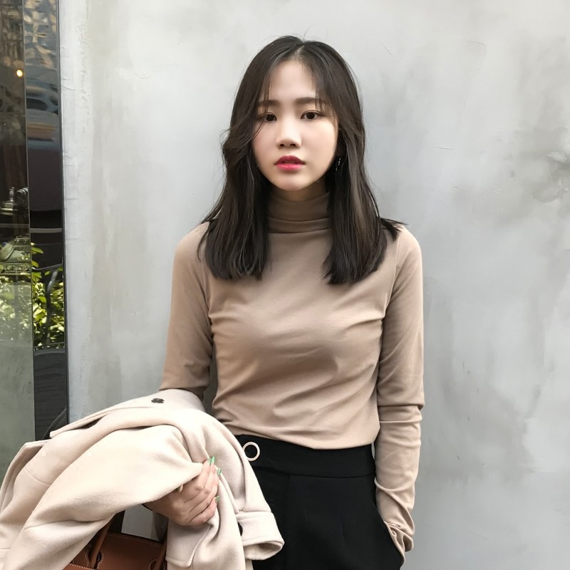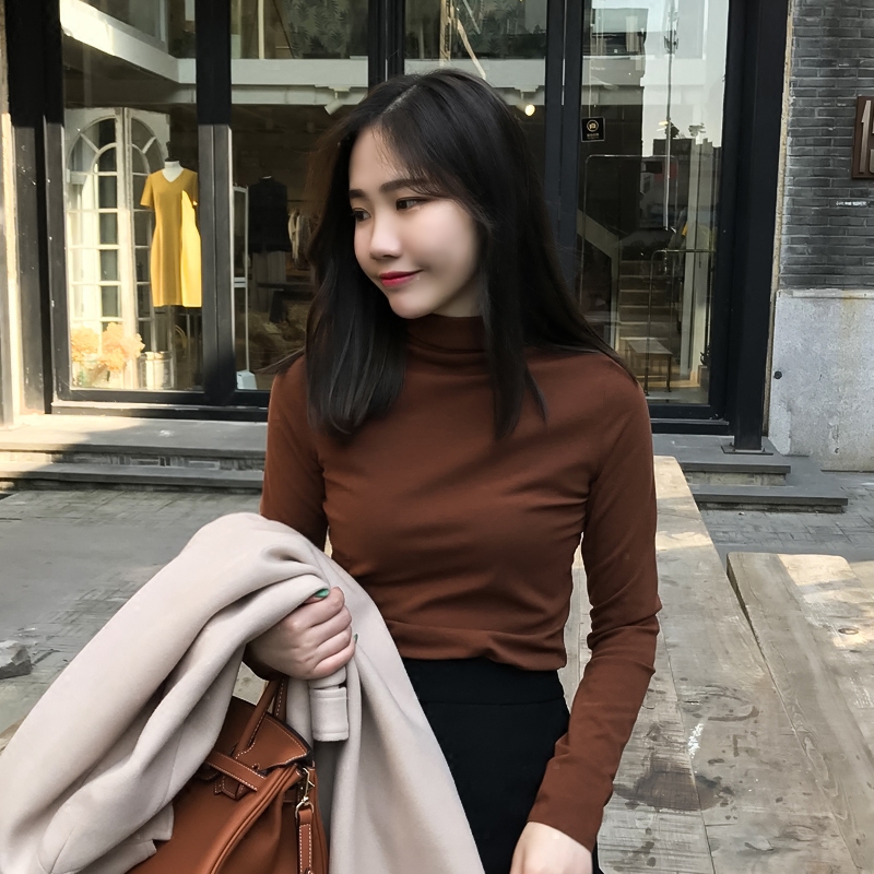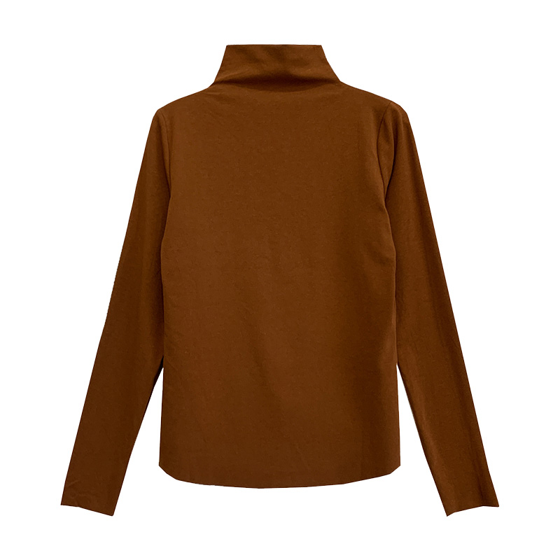 📚 元熙2026春新款半高领磨毛长袖T恤女内搭卡其色打底衫堆堆领上衣