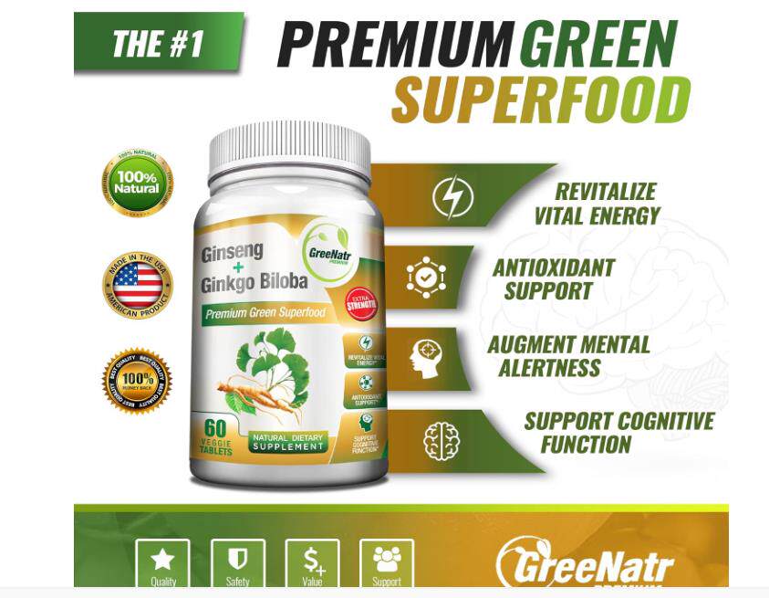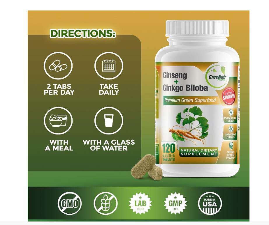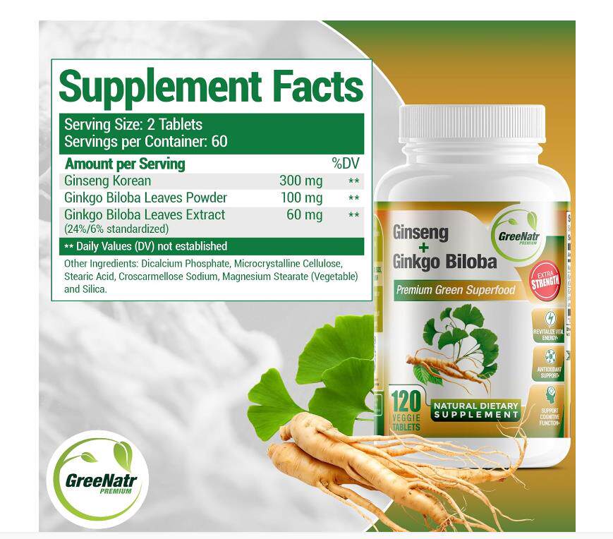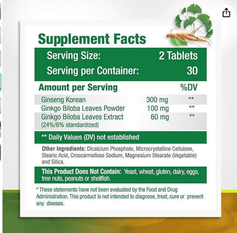 📚 Panax Ginseng Ginkgo Biloba人参银杏片提取成人免疫健康60粒