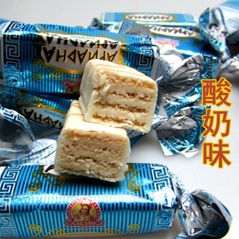 📚 俄罗斯进口斯拉夫酸奶威化牛奶巧克力零食奶油饼干喜糖果年货包邮