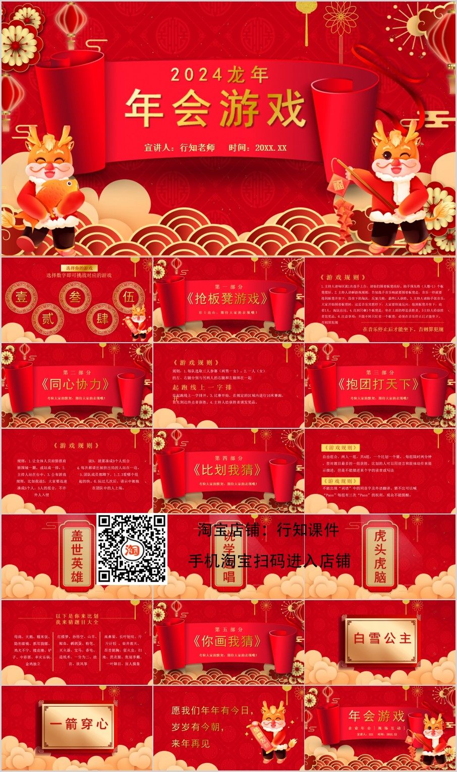 📚 2024新年年会游戏PPT模板龙年元旦晚会你比我猜游戏素材可修改WPS