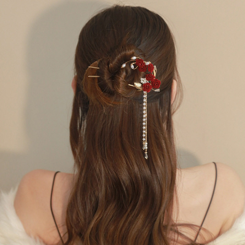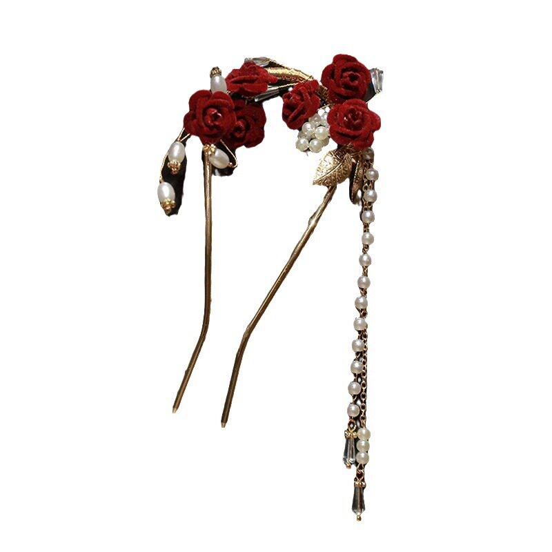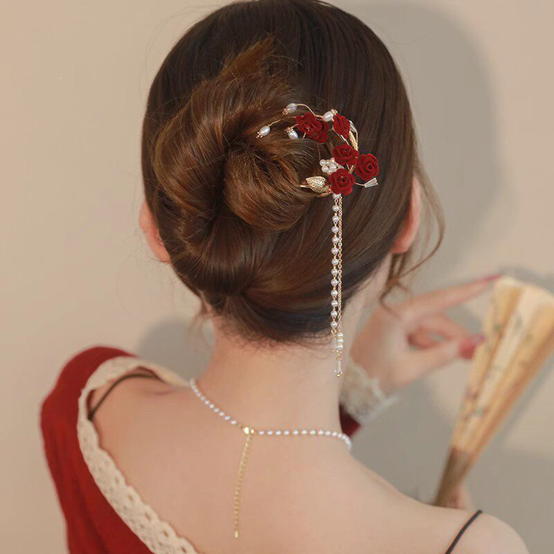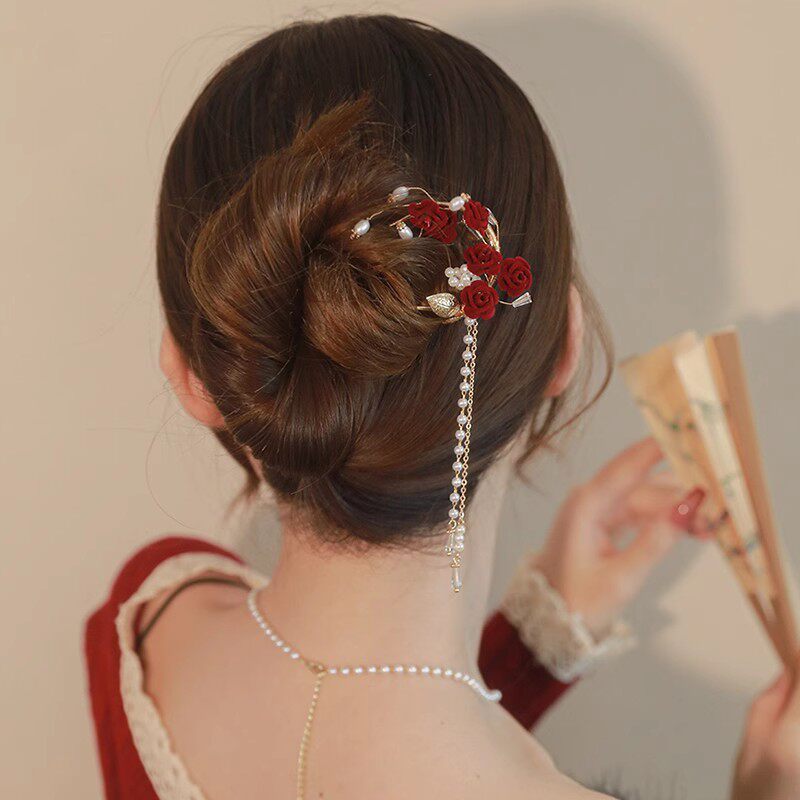 📚 喜婆婆头上戴的花女士盘头花喜婆婆头饰高端结婚妈妈盘头发饰发簪