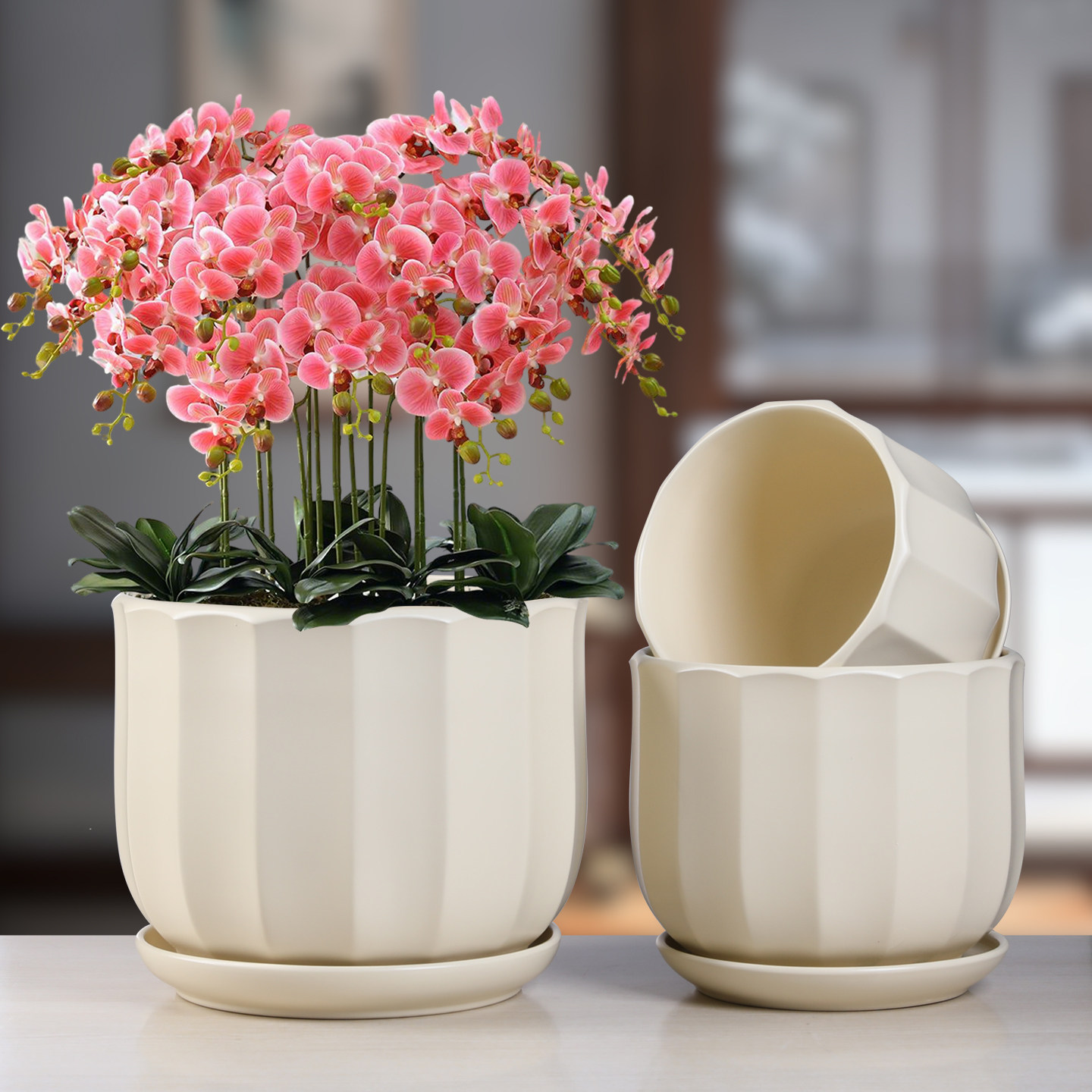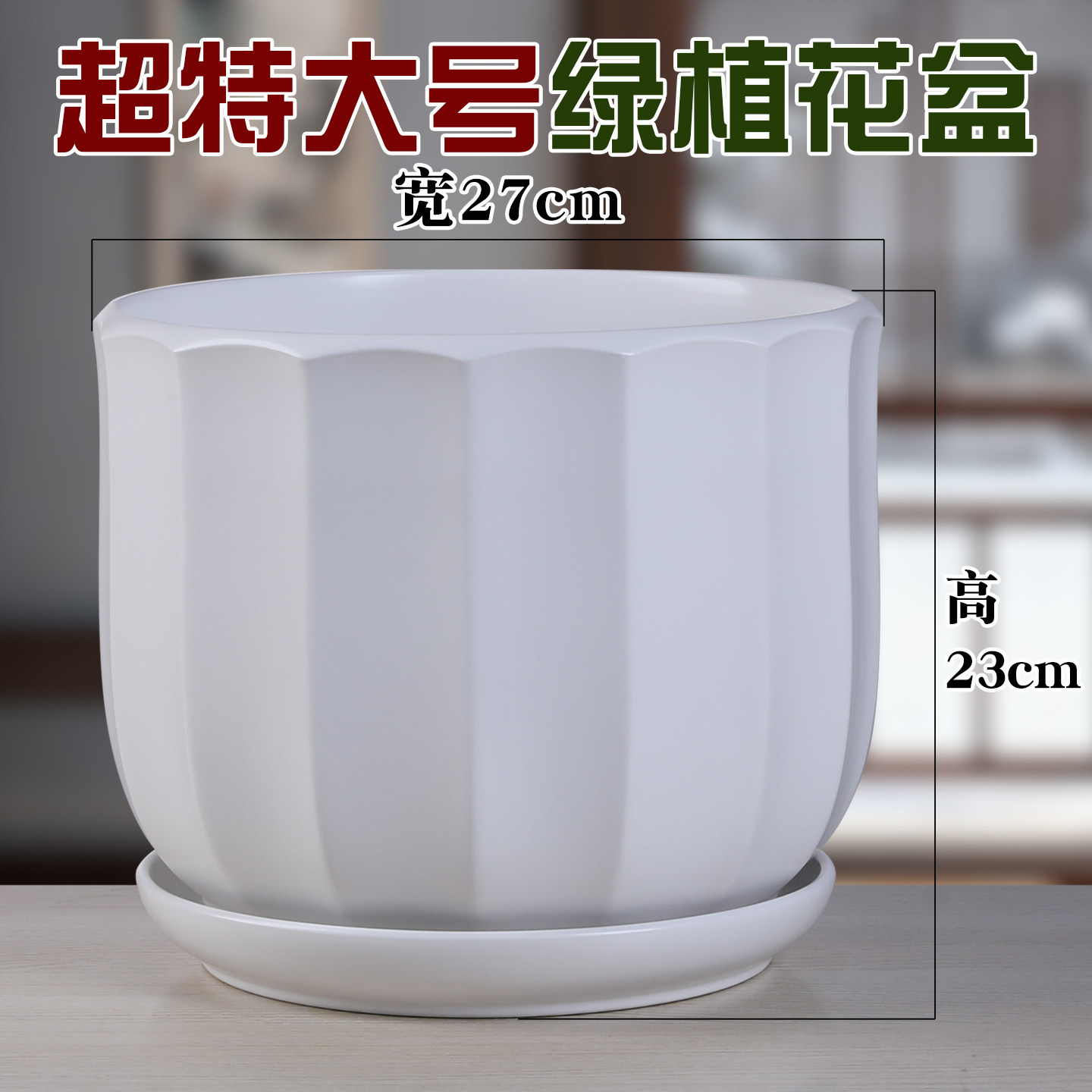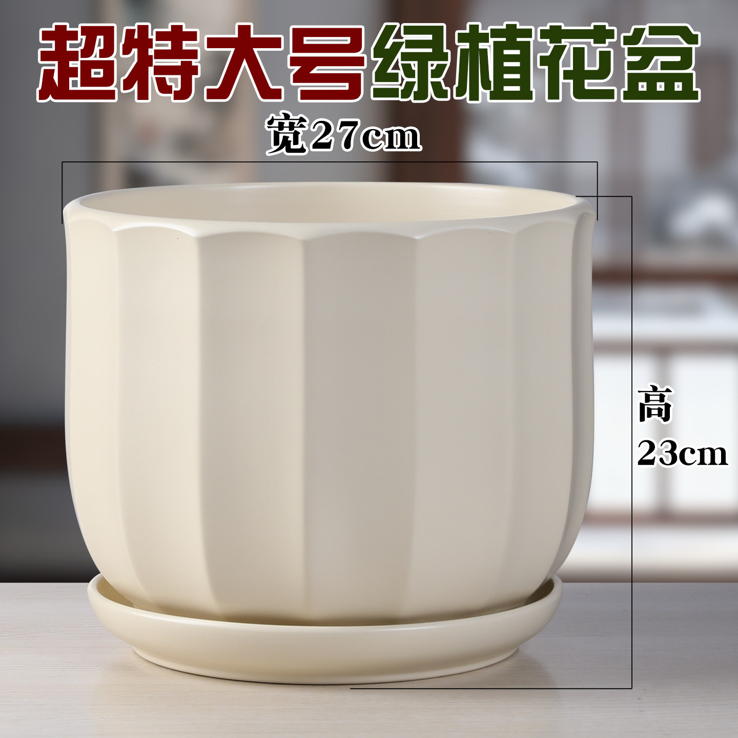 📚 北欧简约陶瓷花盆特大号红色家用多肉阳台落地绿萝客厅吊兰带托盘