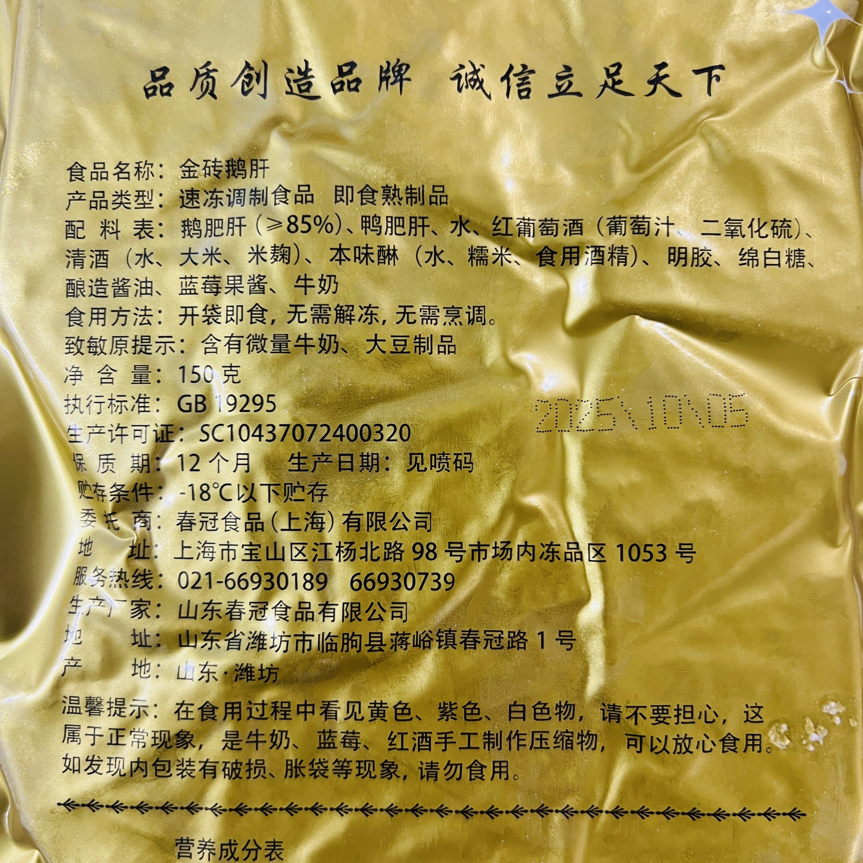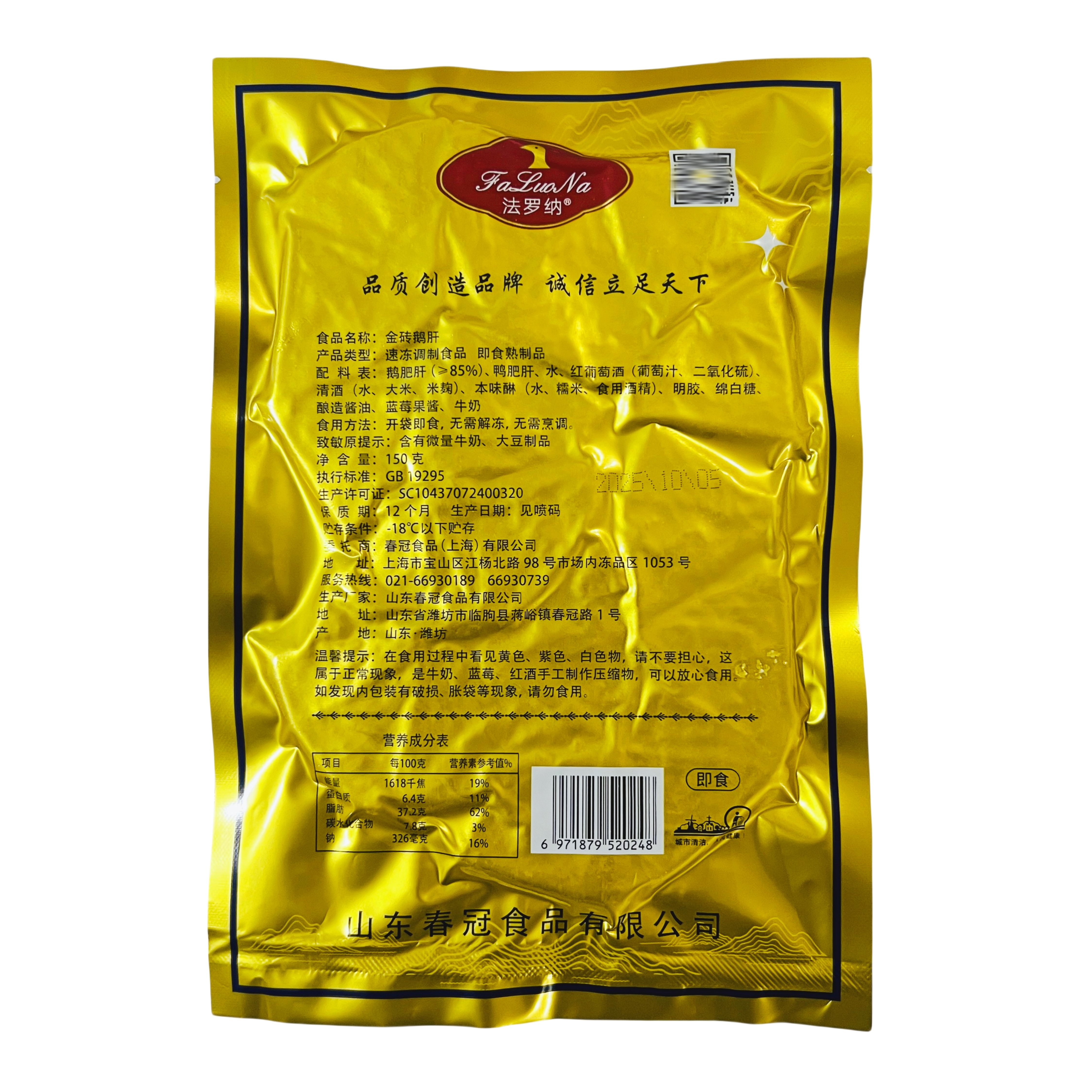 📚 春冠金砖鹅肝150g/10枚法罗纳红酒蓝莓星钻鹅肝日式料理即食合成