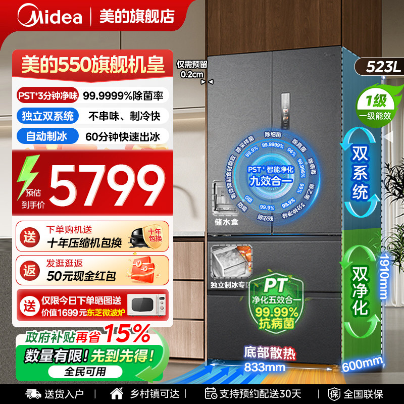 📚 新品美的机皇550法式冰箱以旧换新M60超薄零嵌双系统制冰风冷无霜