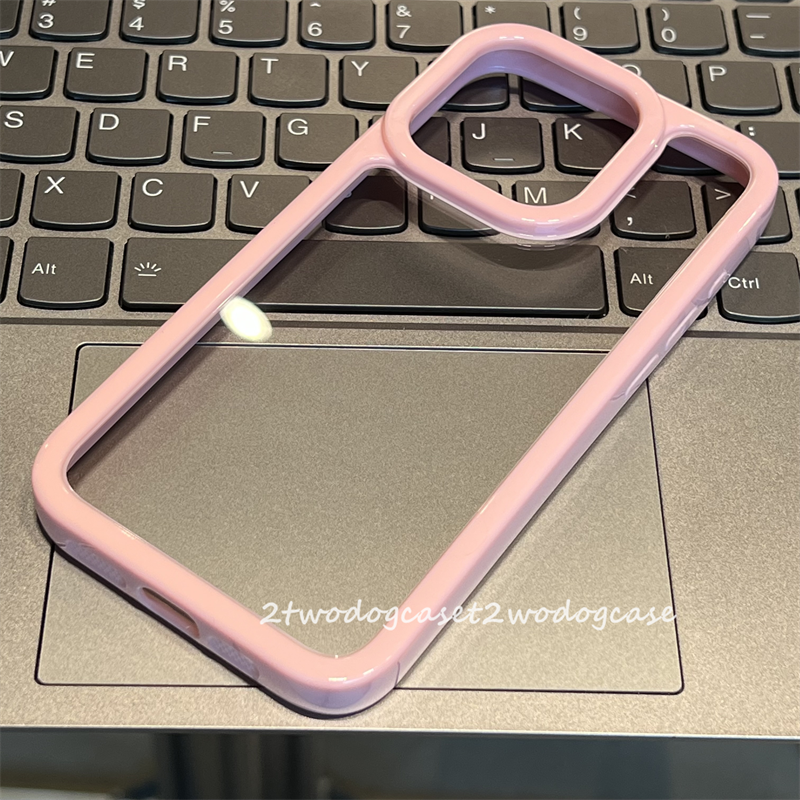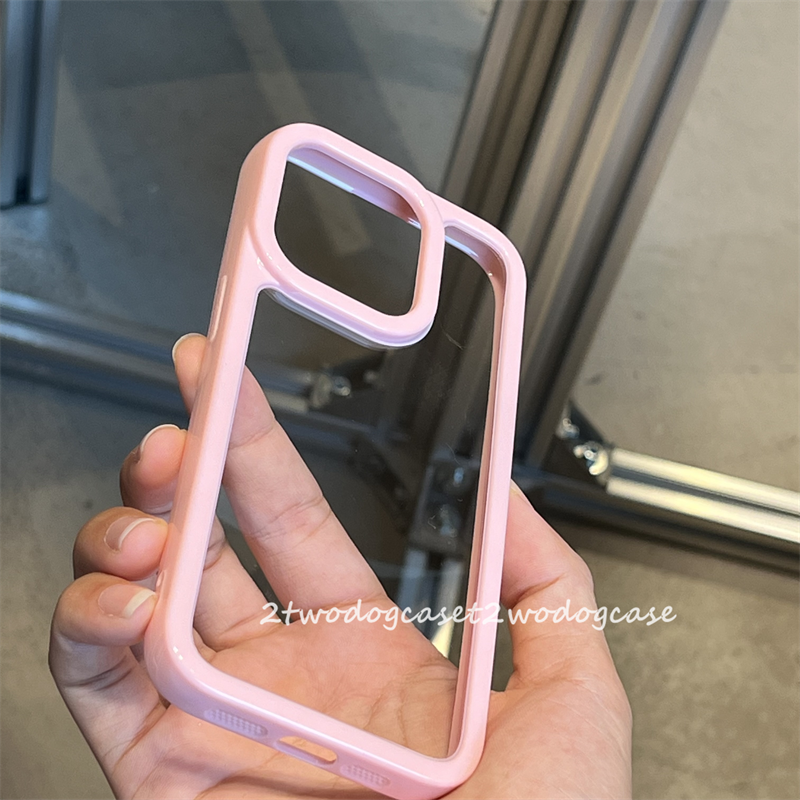 📚 16p15pro静音全包边可爱糖果粉色边框凹槽感可滴胶diy手机壳透明亚克力11/12/13/14promax保护壳软妹粉色17p