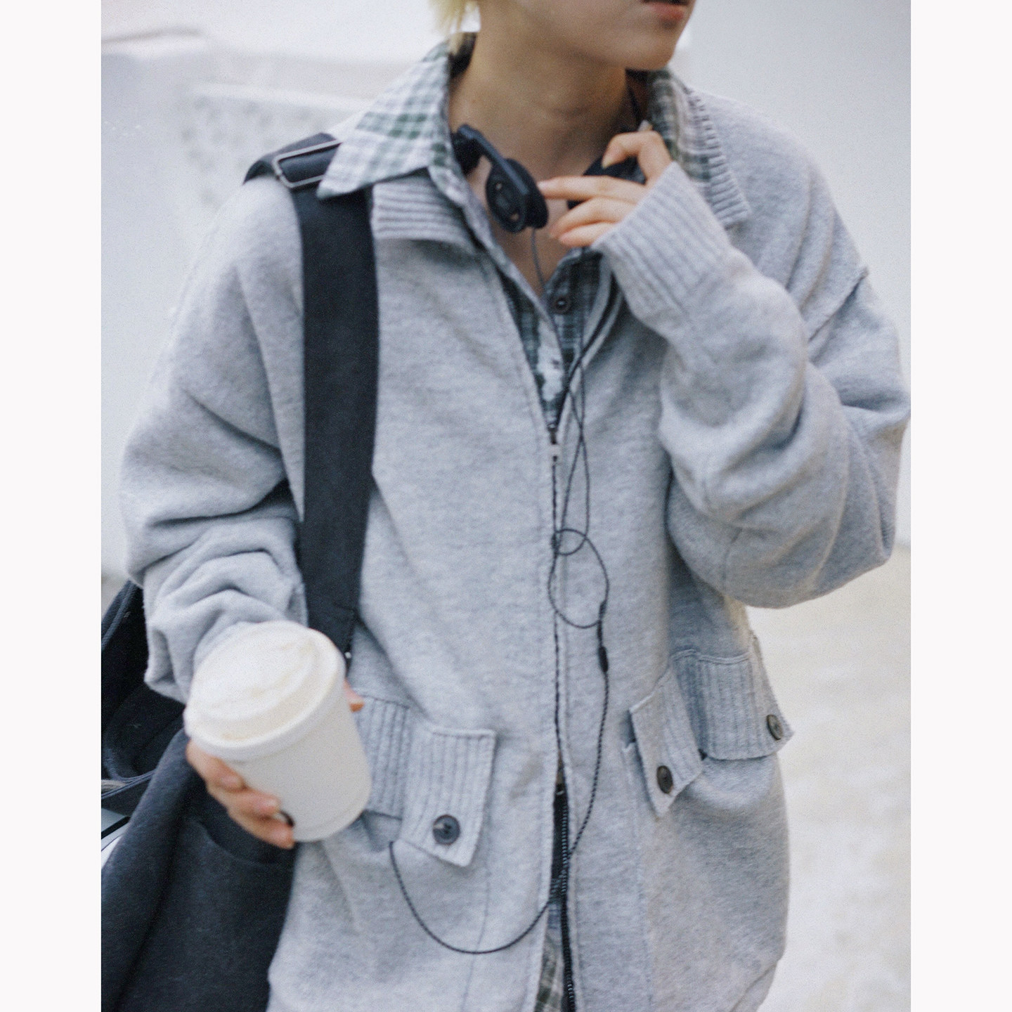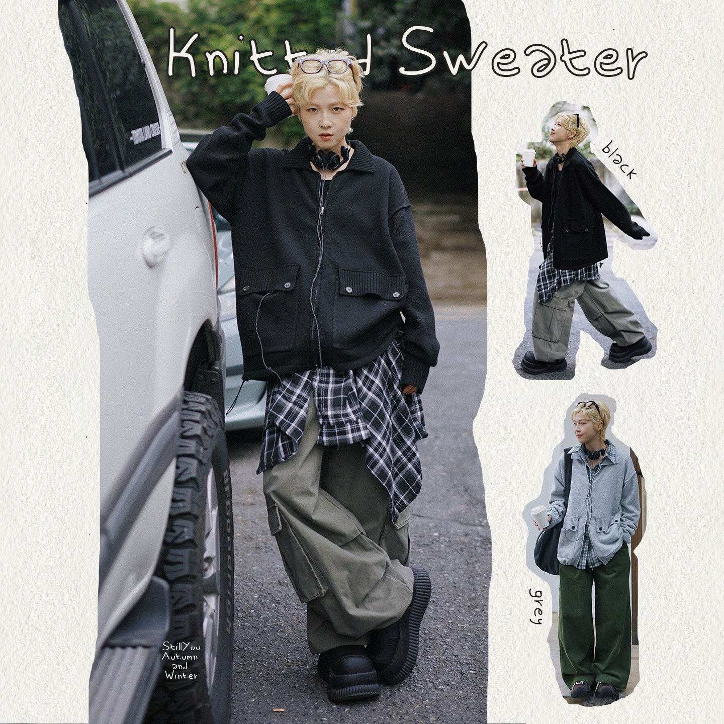 📚 STILLYOU原创复古慵懒翻领毛针织开衫宽松工装大口袋拉链毛衣外套
