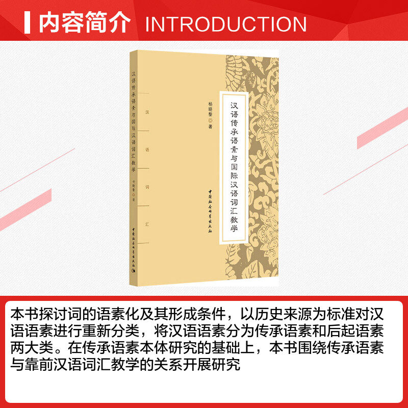 📚 汉语传承语素与国际汉语词汇教学 杨晓黎 著 语言文字文教 新华书店正版图书籍 中国社会科学出版社