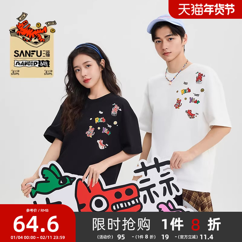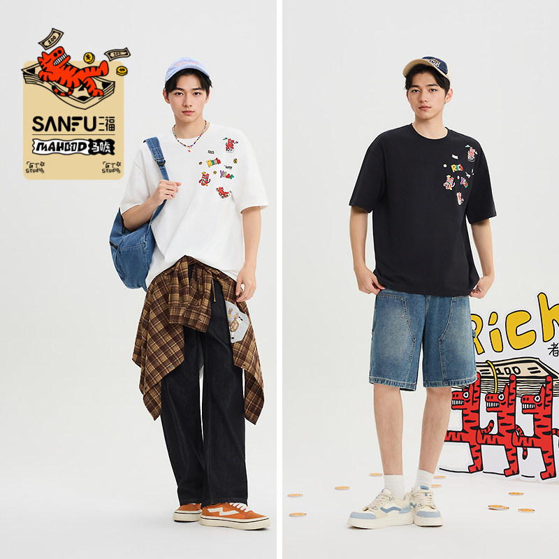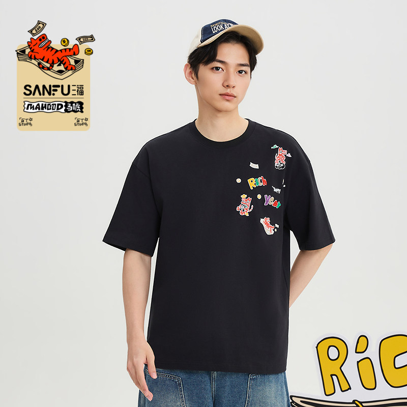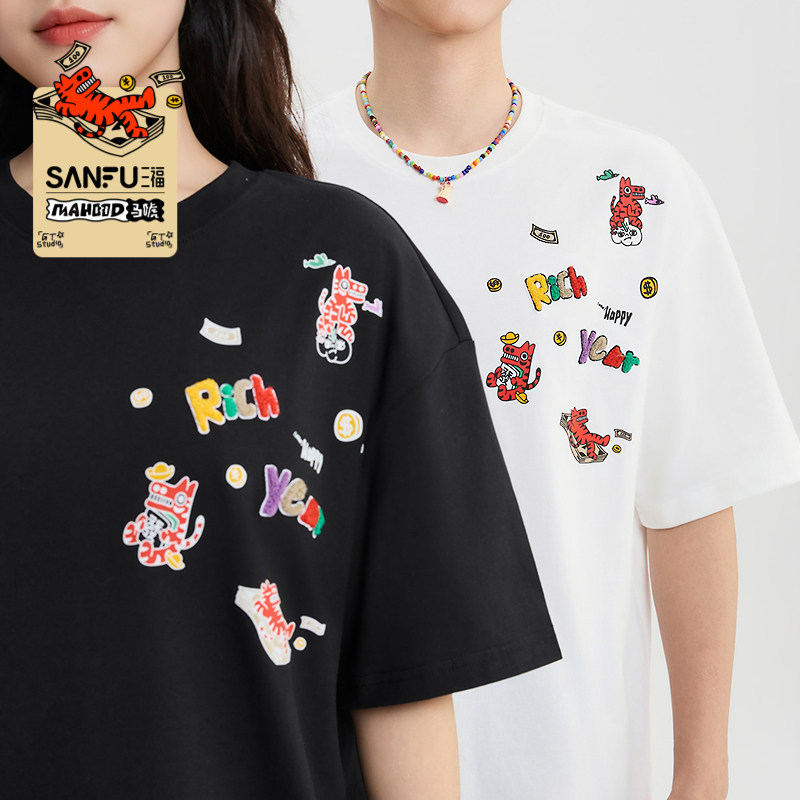 📚 【马唬联名】三福2026夏季多彩刺绣重磅短袖t恤男宽松上衣517281