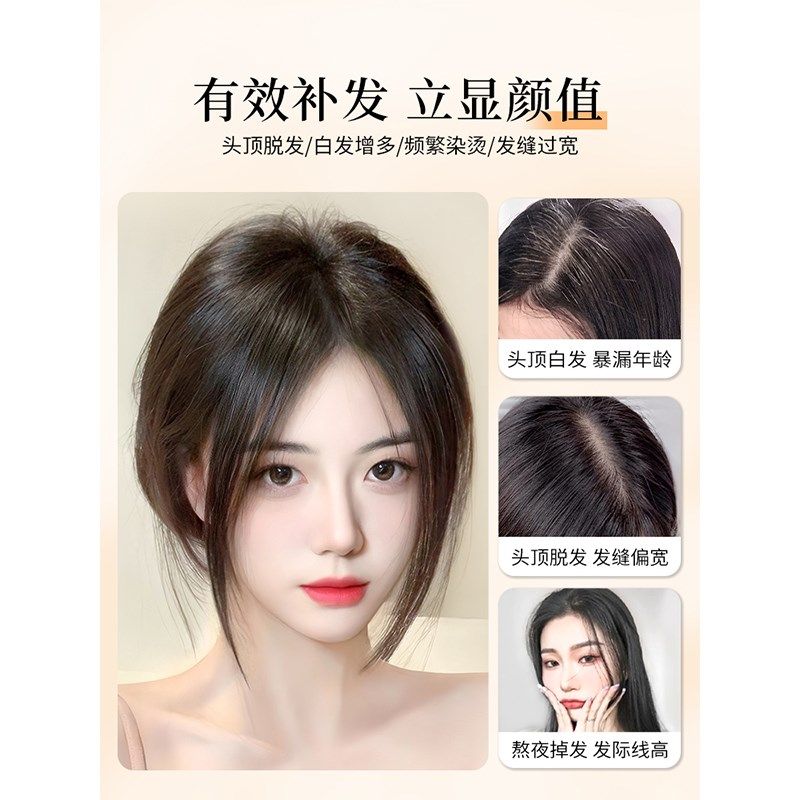 📚 假发女片头顶真发全真人发蓬松高颅顶头发稀少遮白发盖无痕补发片