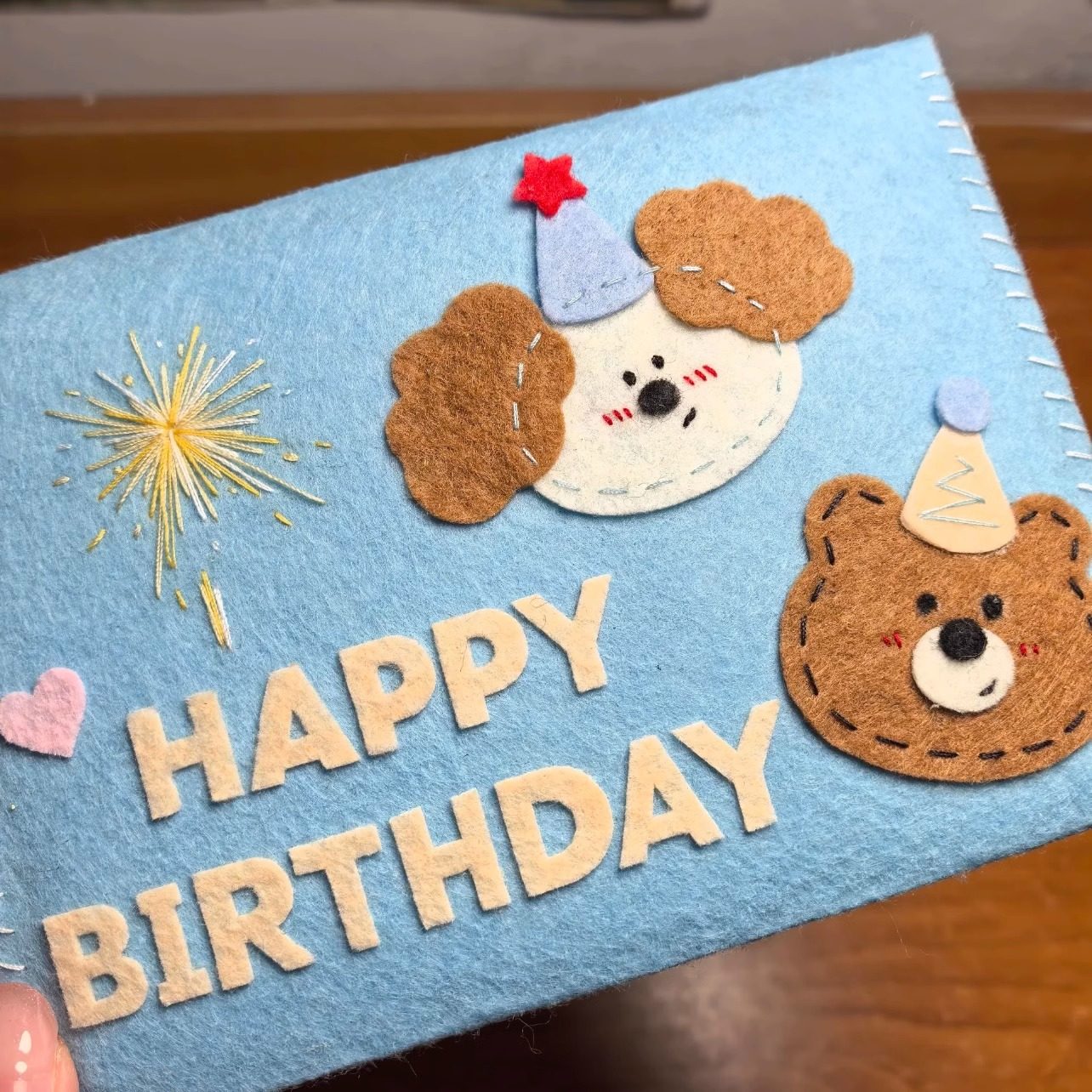 📚 小红书同款小熊生日快乐不织布信封贺卡可放信送朋友闺蜜可爱礼物