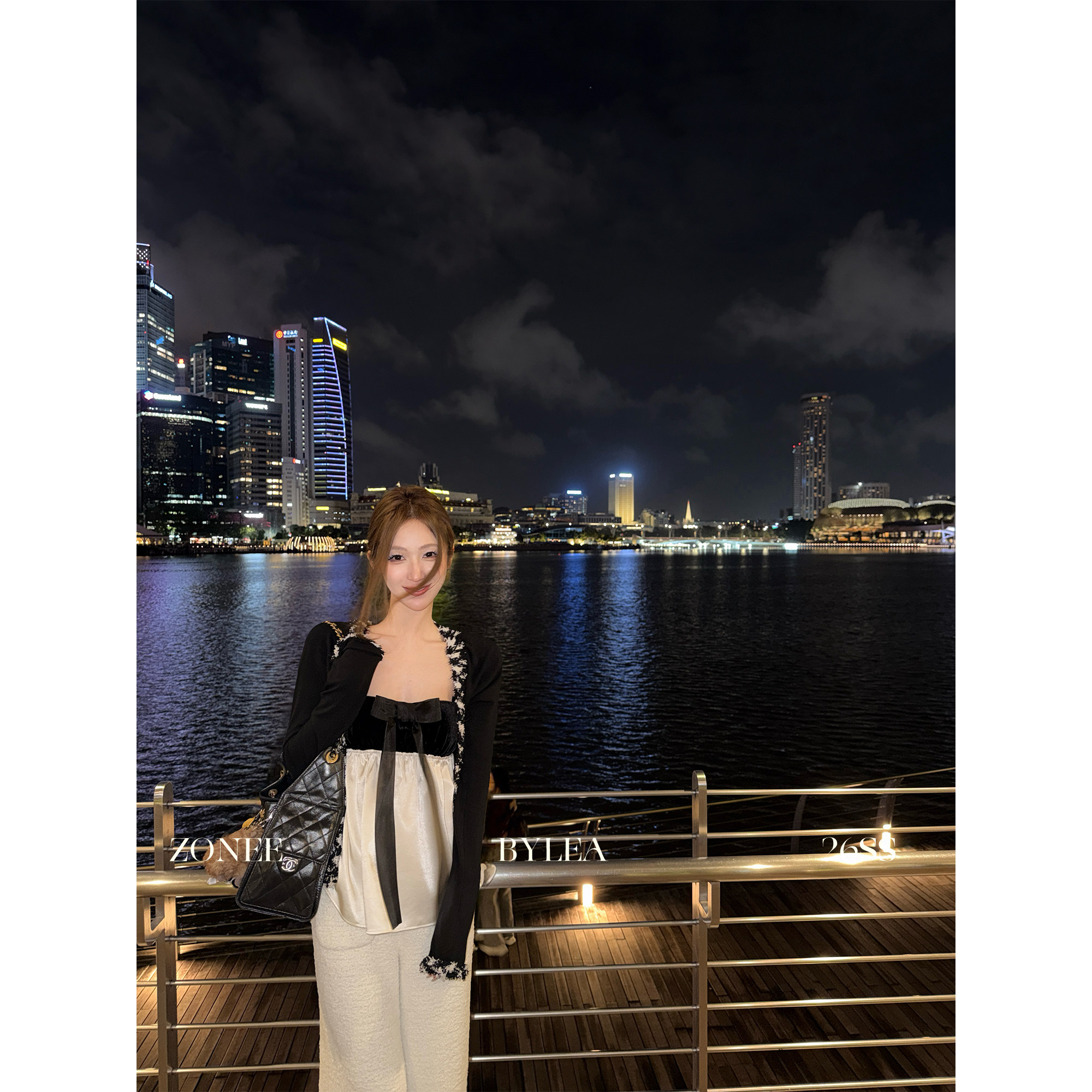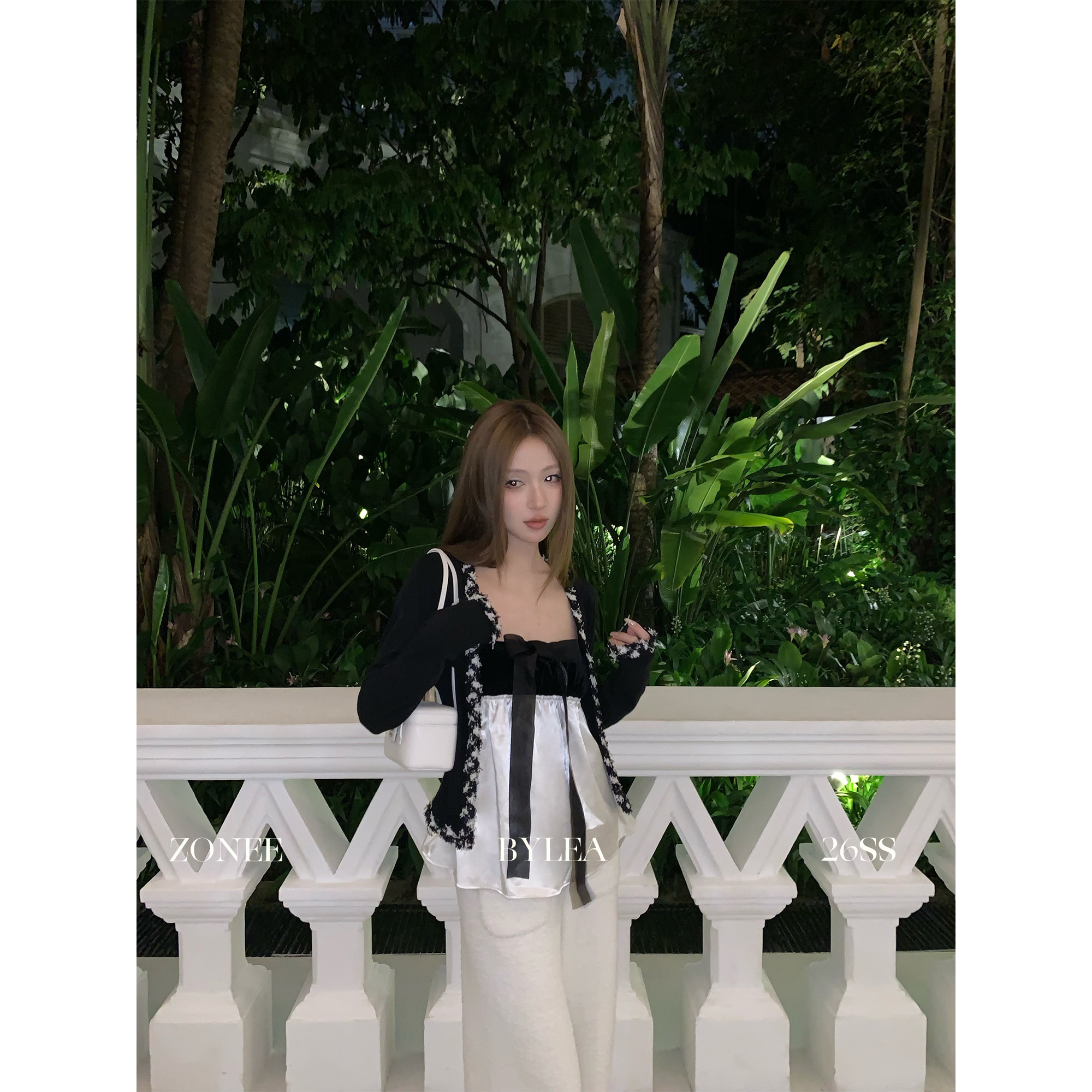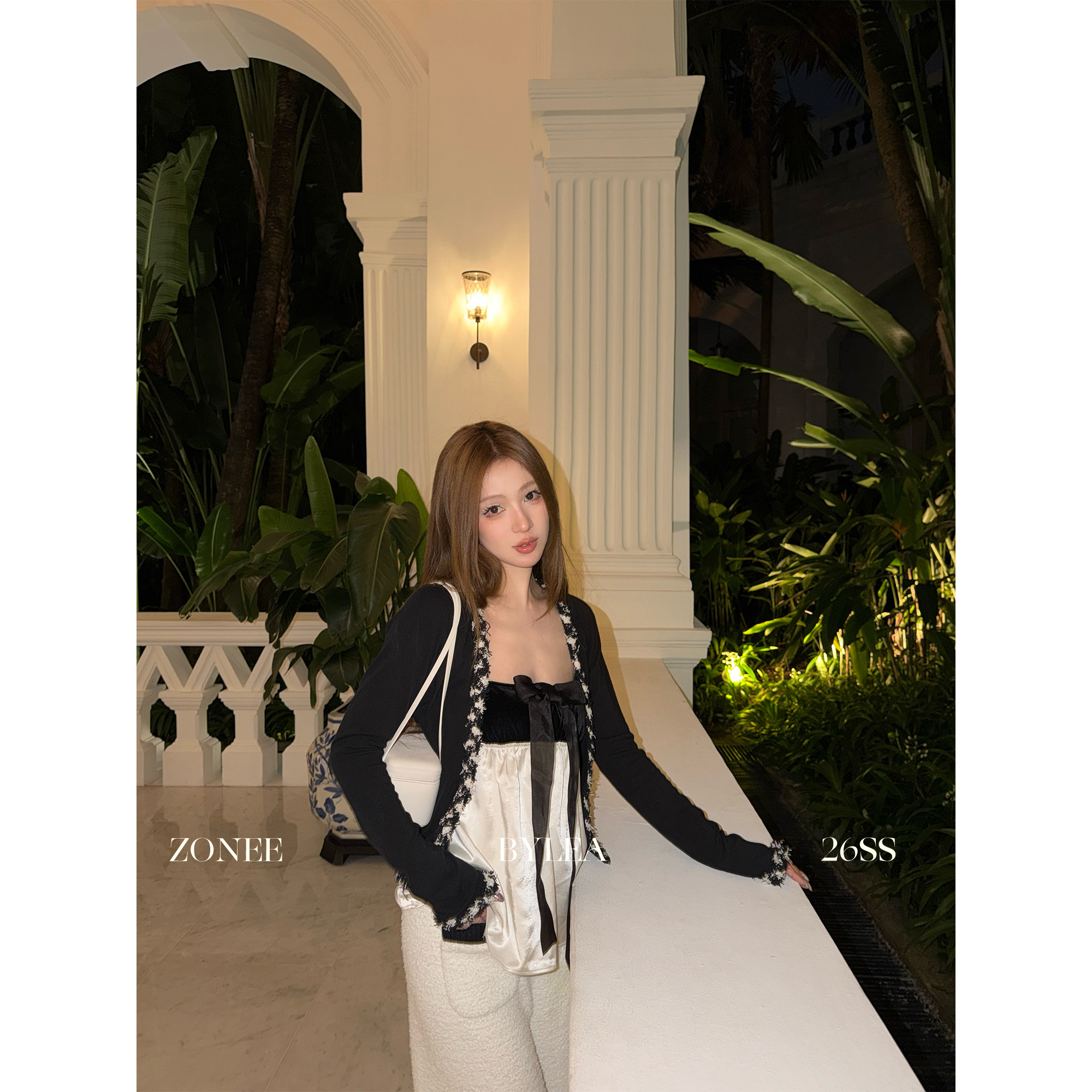 📚 ZONEE/LEA宋亦雯 莱佛士周末 法式设计小香拼接花边针织开衫上衣