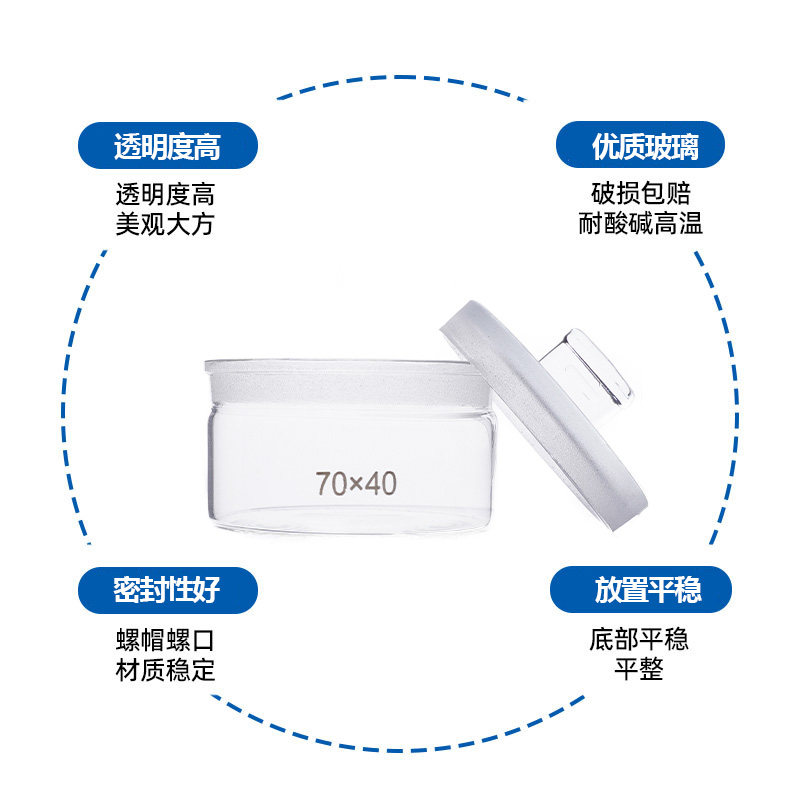📚 玺玻 高型 扁型 低型称量瓶25*25 40*25 50*30 60*30 70*35 30*50 40*70mm密封玻璃瓶高型扁形玻璃称量皿瓶
