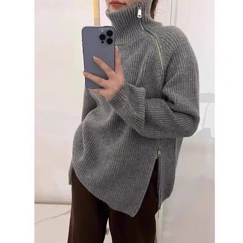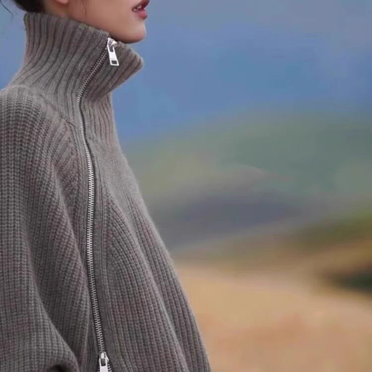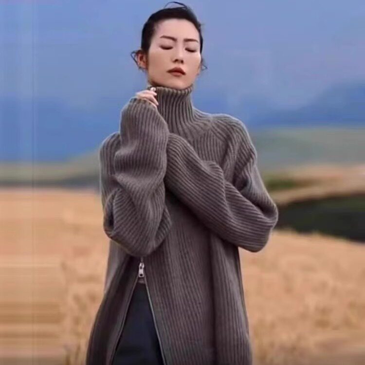 📚 大表姐刘雯同款高领羊绒衫女慵懒风侧拉链宽松羊毛针织衫加厚毛衣