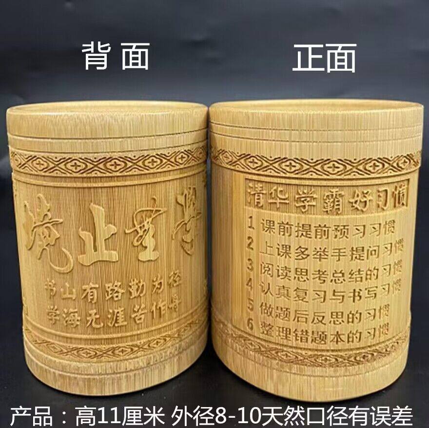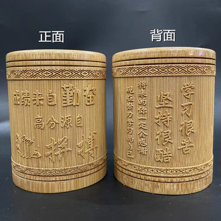 📚 圆形竹刻笔筒学习励志笔筒办公桌面创意时尚大容量收纳盒成年礼物