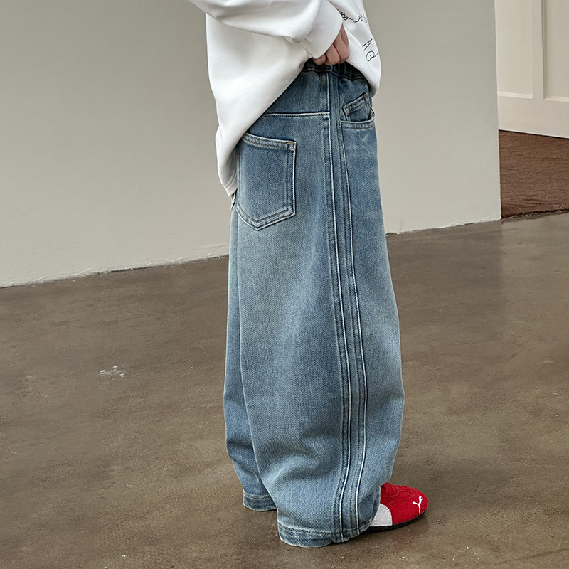 📚 男童加绒牛仔裤儿童加厚抓绒裤子2025冬季新款宝宝冬装弯刀休闲裤