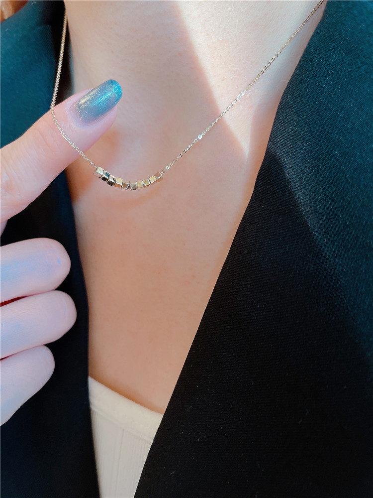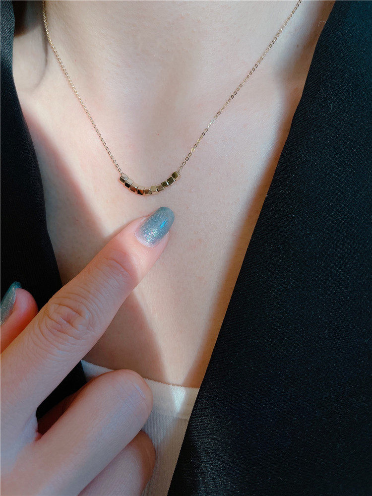 📚 白小C黄金14K金项链女精致高级感个性立体魔方碎金方糖吊坠锁骨链