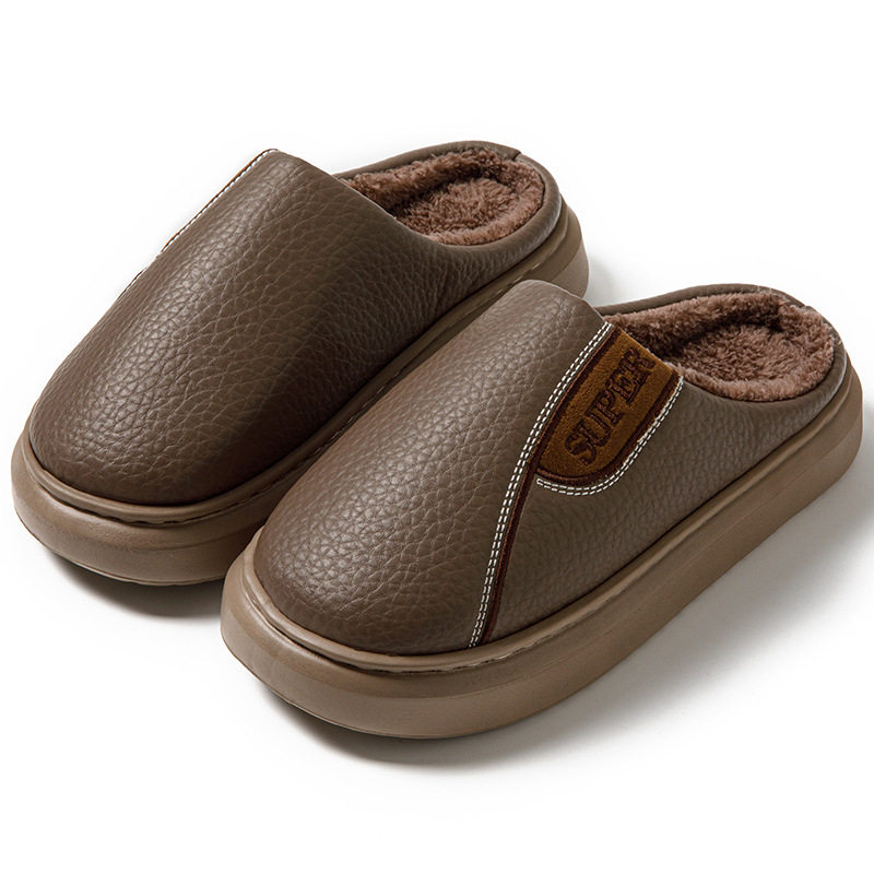 📚 皮质25新款秋冬季棉拖鞋男士特大码家居室内加绒厚底家居防滑棉鞋