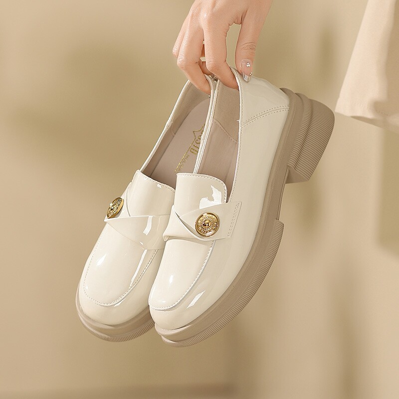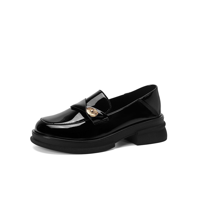 📚 大东黑色金币乐福鞋女2026新款春季厚底圆头英伦风小皮鞋漆皮单鞋
