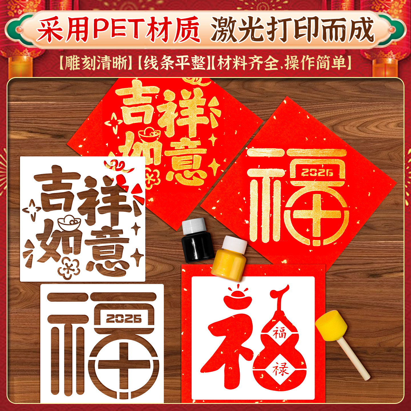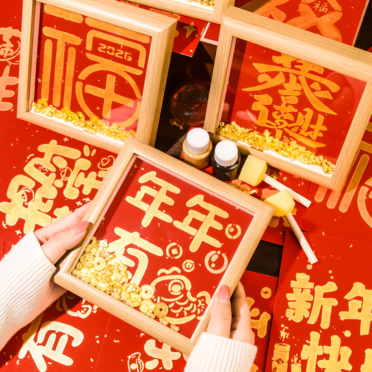 📚 2026年新年马年手工diy相框福字拓印年画模板新年拓印洒金万年红春节镂空模具幼儿园儿童手工材料包装饰相框