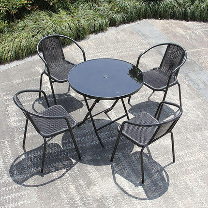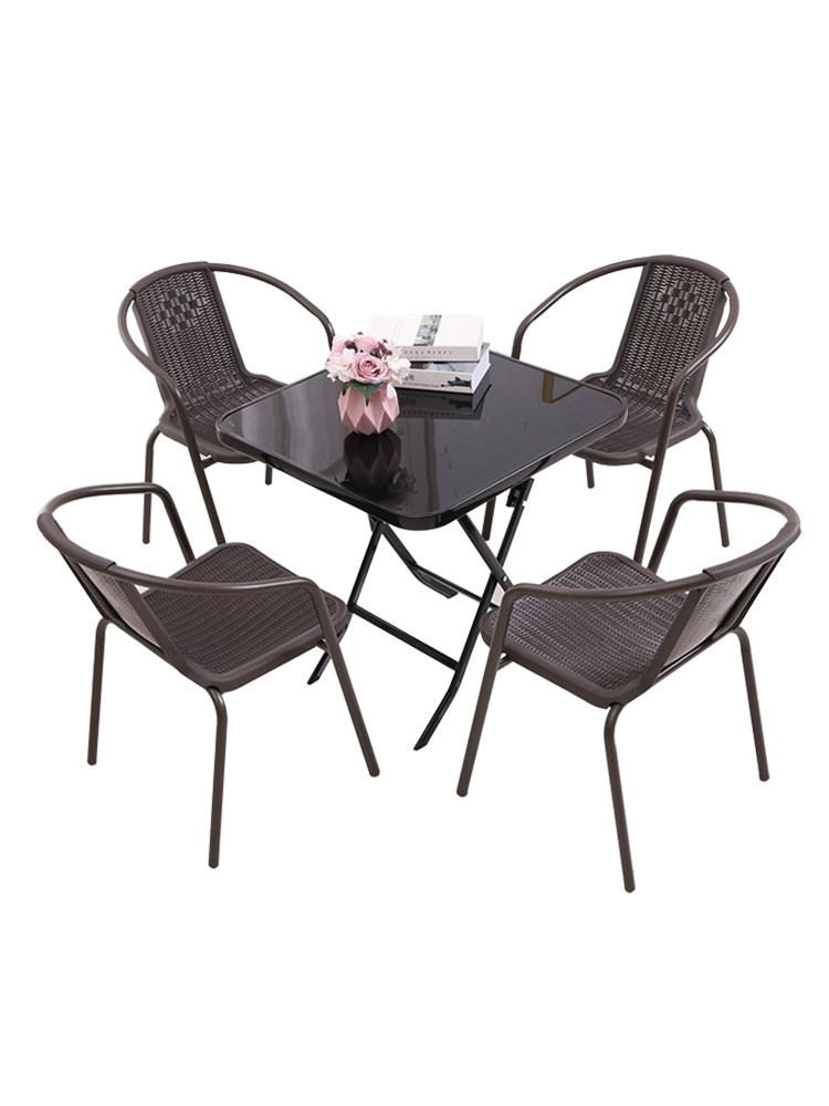 📚 室外可折叠桌椅仿藤编户外露天简约阳台小茶几防水防晒桌椅伞套装