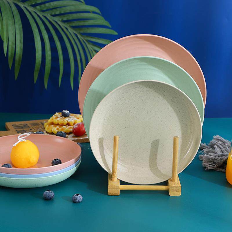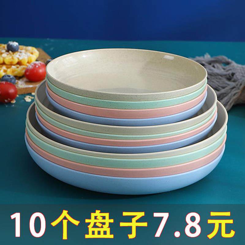 📚 北欧圆形塑胶盘子盘子家用麦秆骨碟盘餐具套组水果盘商用早餐盘