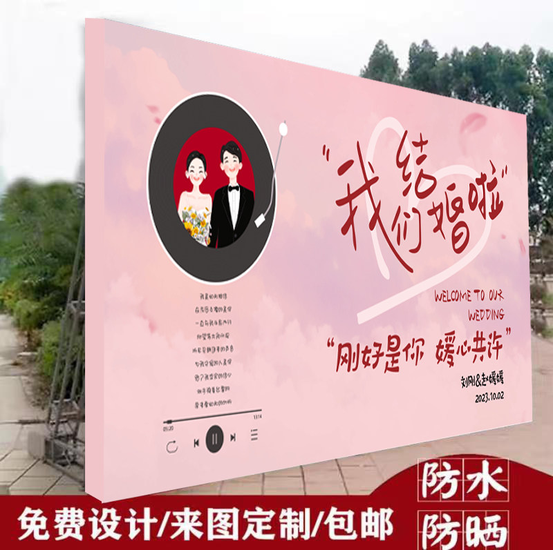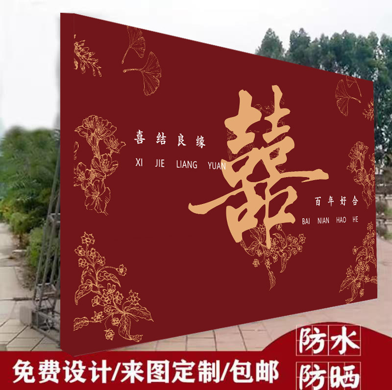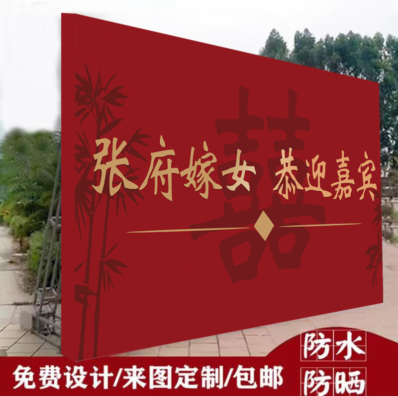 📚 结婚酒宴酒席喜宴恭迎嘉宾红色背景装饰喷绘大气婚礼 迎宾背景墙