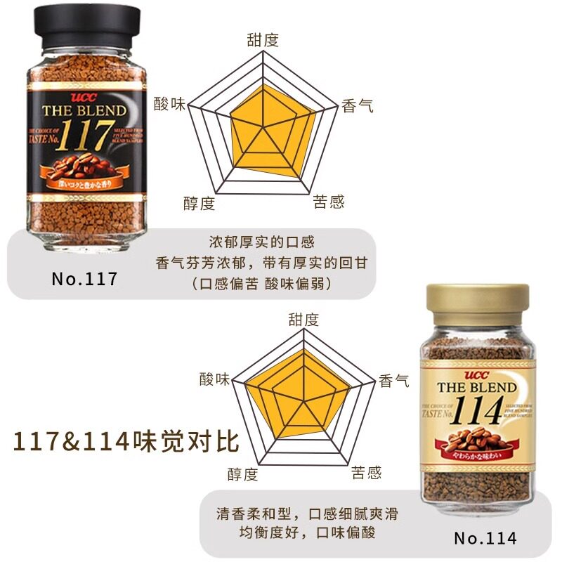 📚 日本原装进口悠诗诗UCC117黑咖啡114无蔗糖冻干美式速溶咖啡 4瓶