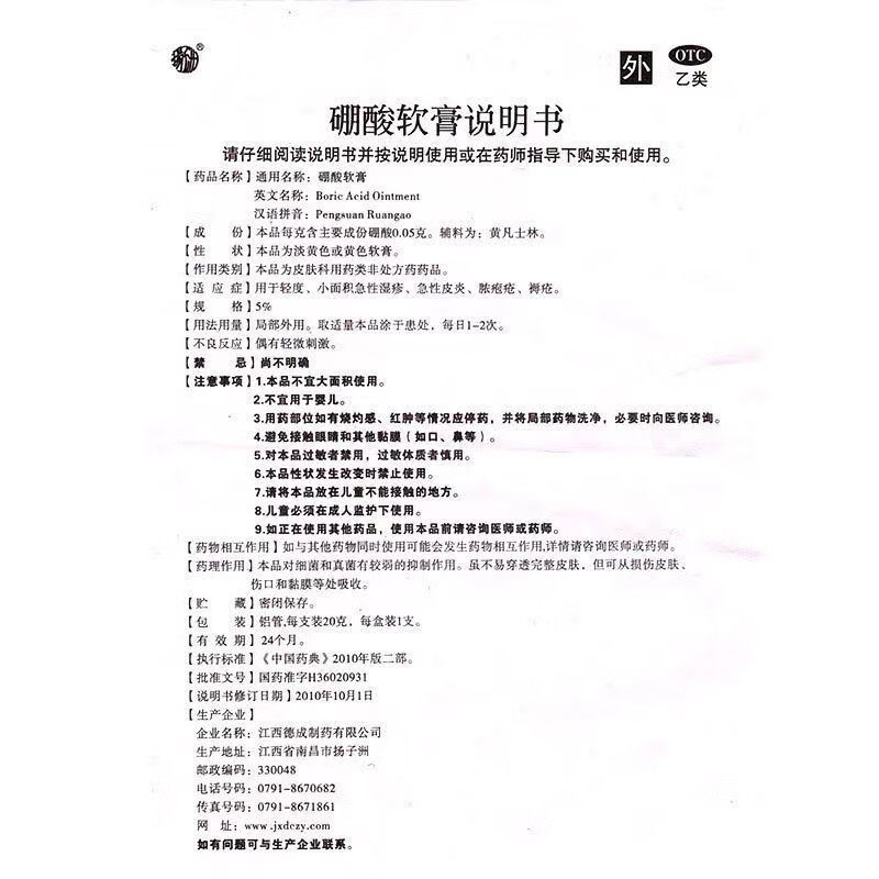 📚 扬子洲 硼酸软膏 20g*1支/盒 轻度小面积急性湿疹急性皮炎脓疱疮