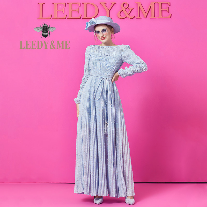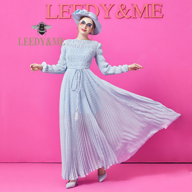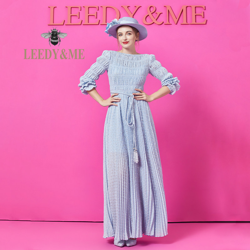 📚 LEEDY&ME经典法式优雅晚礼服裙打揽工艺日常活动修身长袖连衣裙