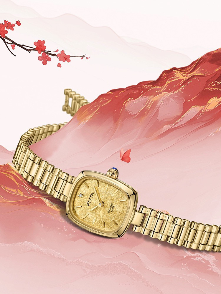 📚 飞亚达新品复古小金表石英女表金箔款小巧轻奢防水女友礼L865032