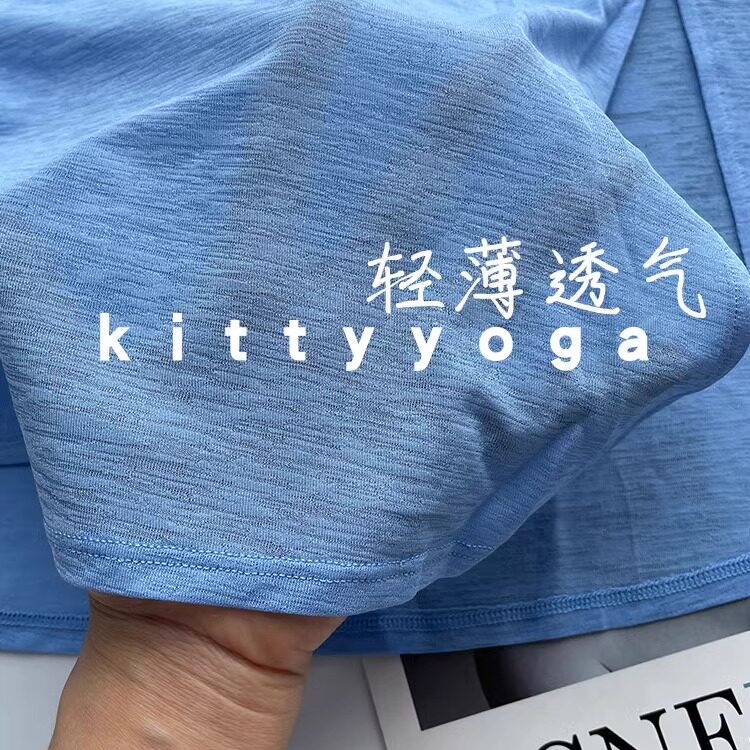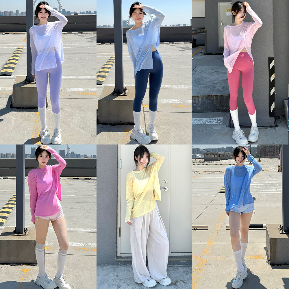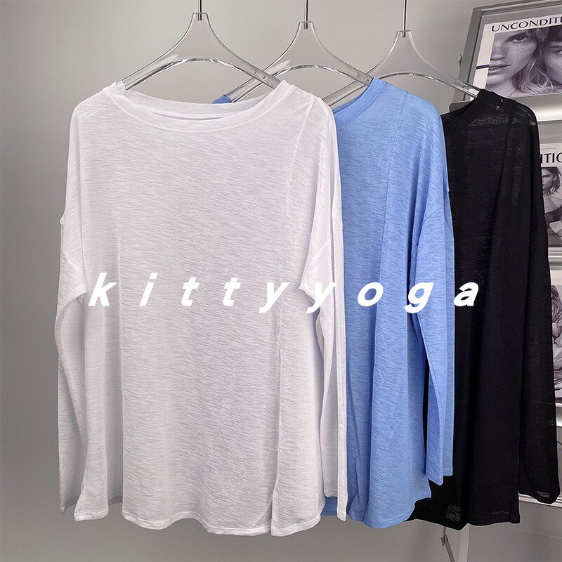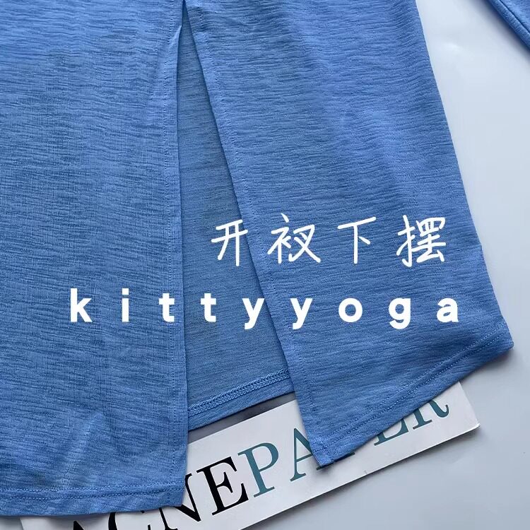 📚 秋新品瑜伽罩衫长袖宽松透气竹节纱简约开衩遮肉运动上衣健身锻炼