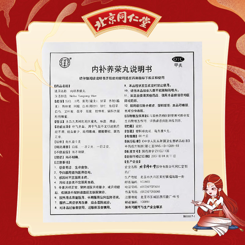 📚 北京同仁堂内补养荣丸6g*10丸补气养血气血不足月经量少经期腹痛