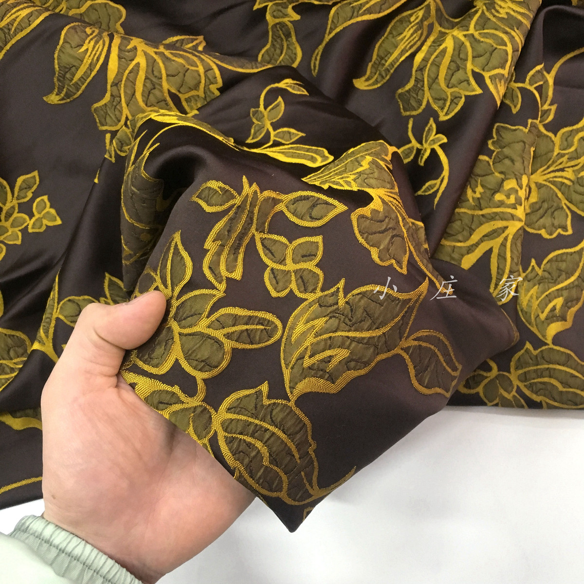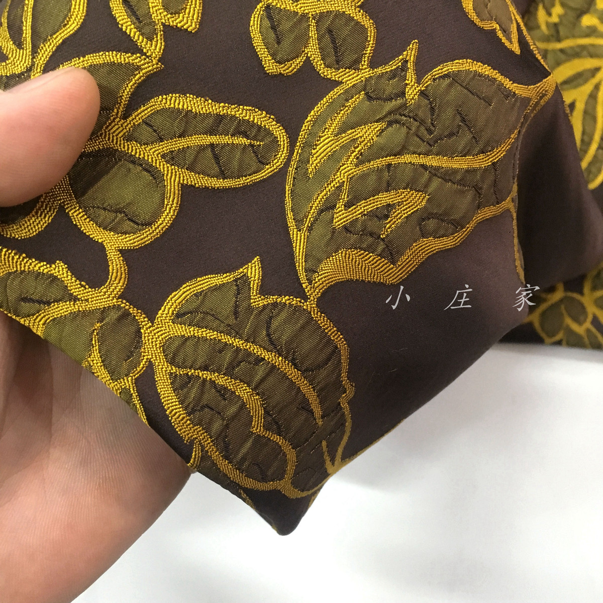 📚 气质咖啡色立体浮雕花卉图案提花时装面料 春秋 柔软 垂坠 布料