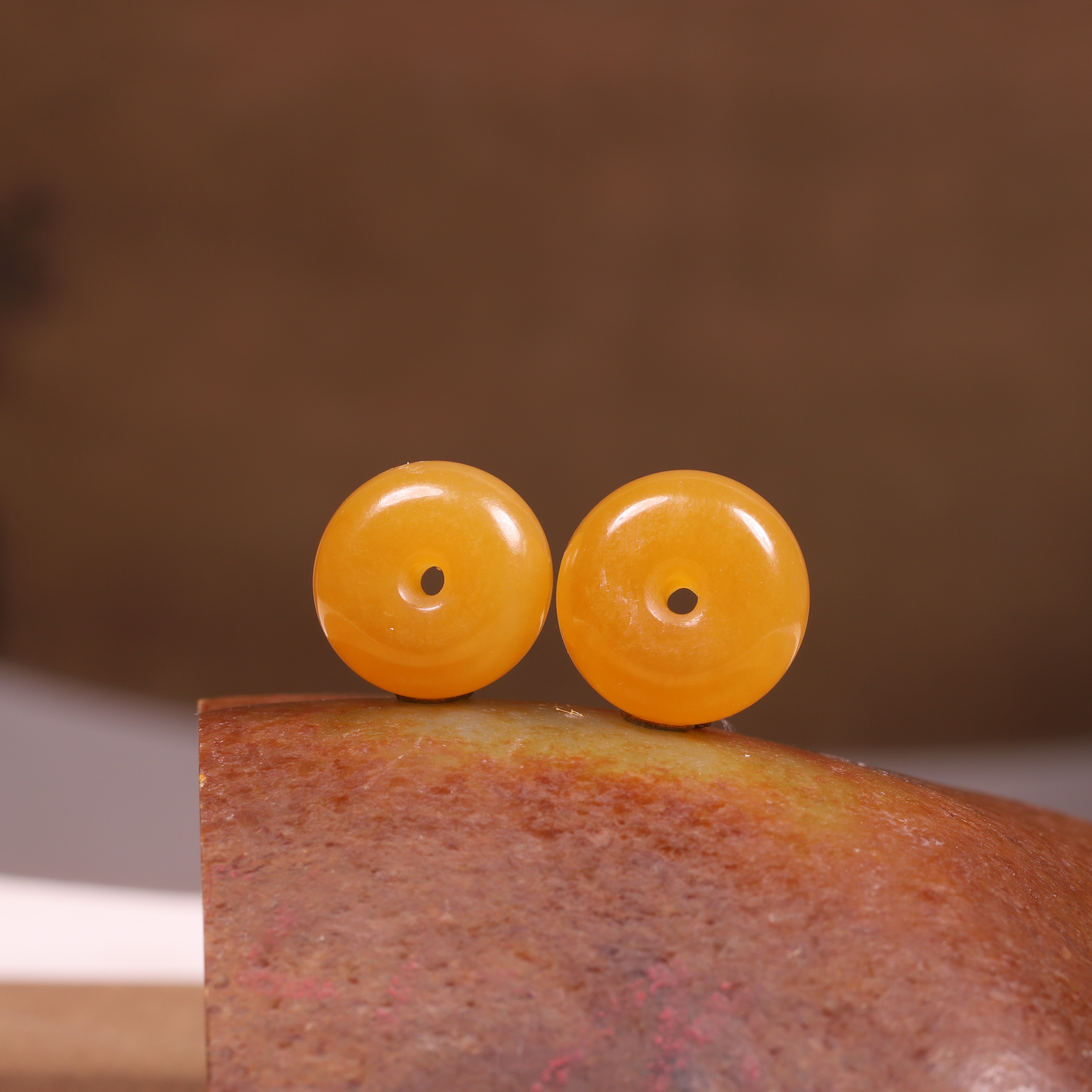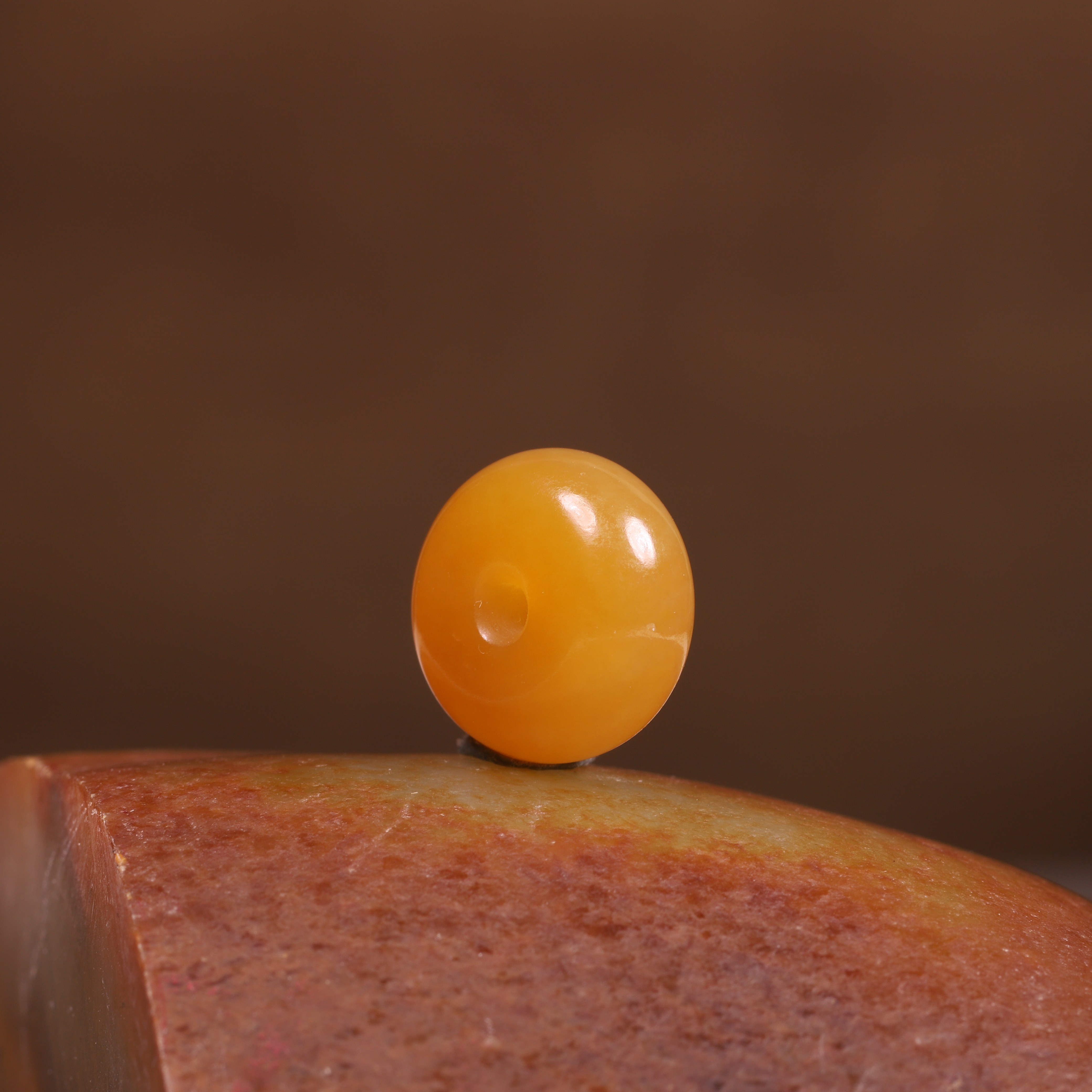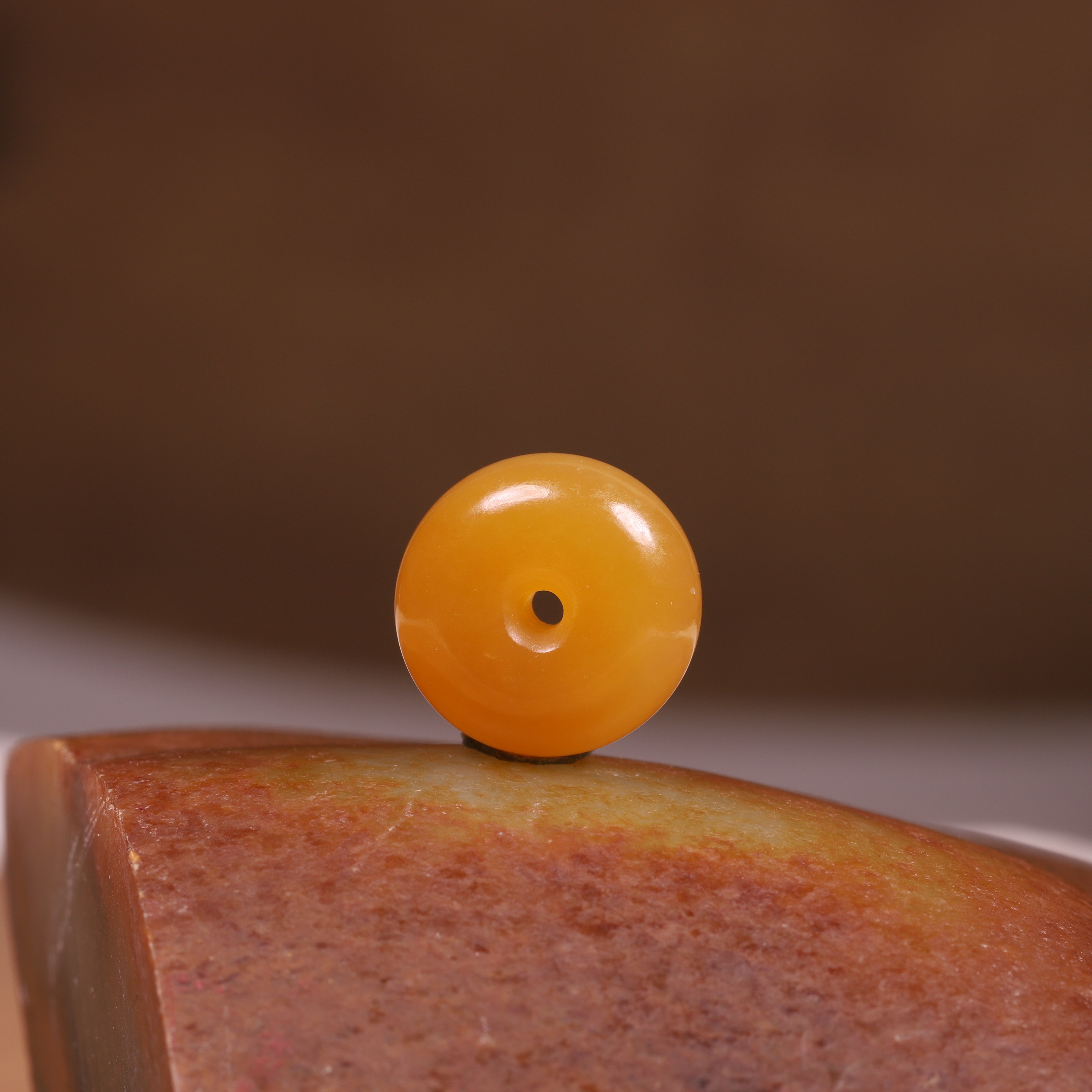 📚 14mm鸡油黄新疆和田玉籽料平安扣黄沁小平安扣黄沁隔片手串配珠