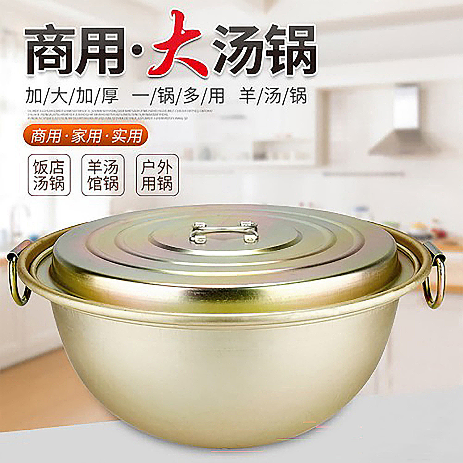 📚 超大号铝锅商用圆底双耳大汤锅加厚熬羊汤锅大锅户外老式铝炖锅