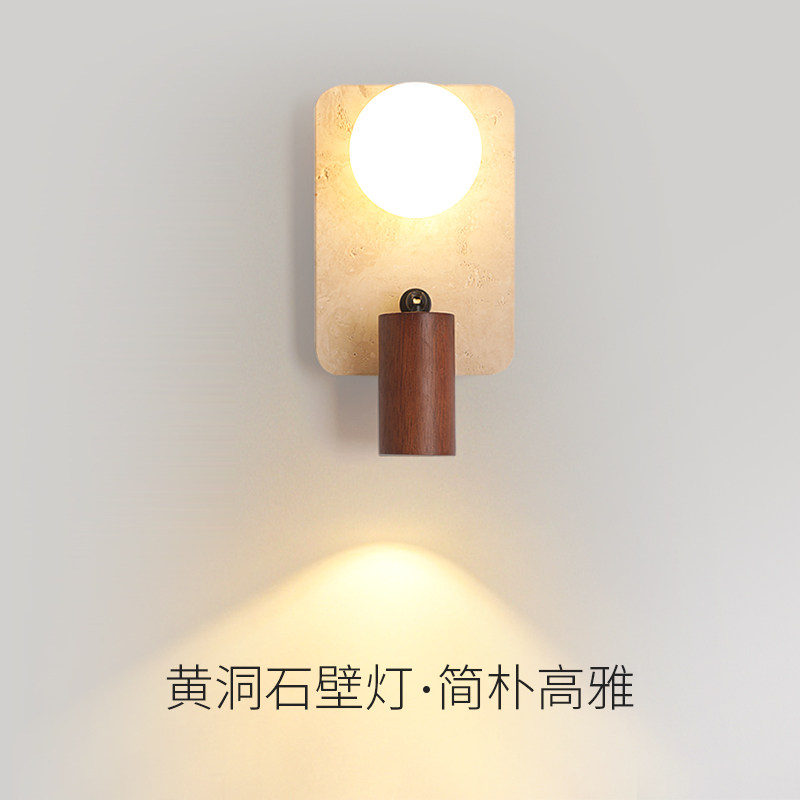 📚 中古黄洞石侘寂风卧室床头壁灯客厅书房壁挂氛围射灯房间阅读灯